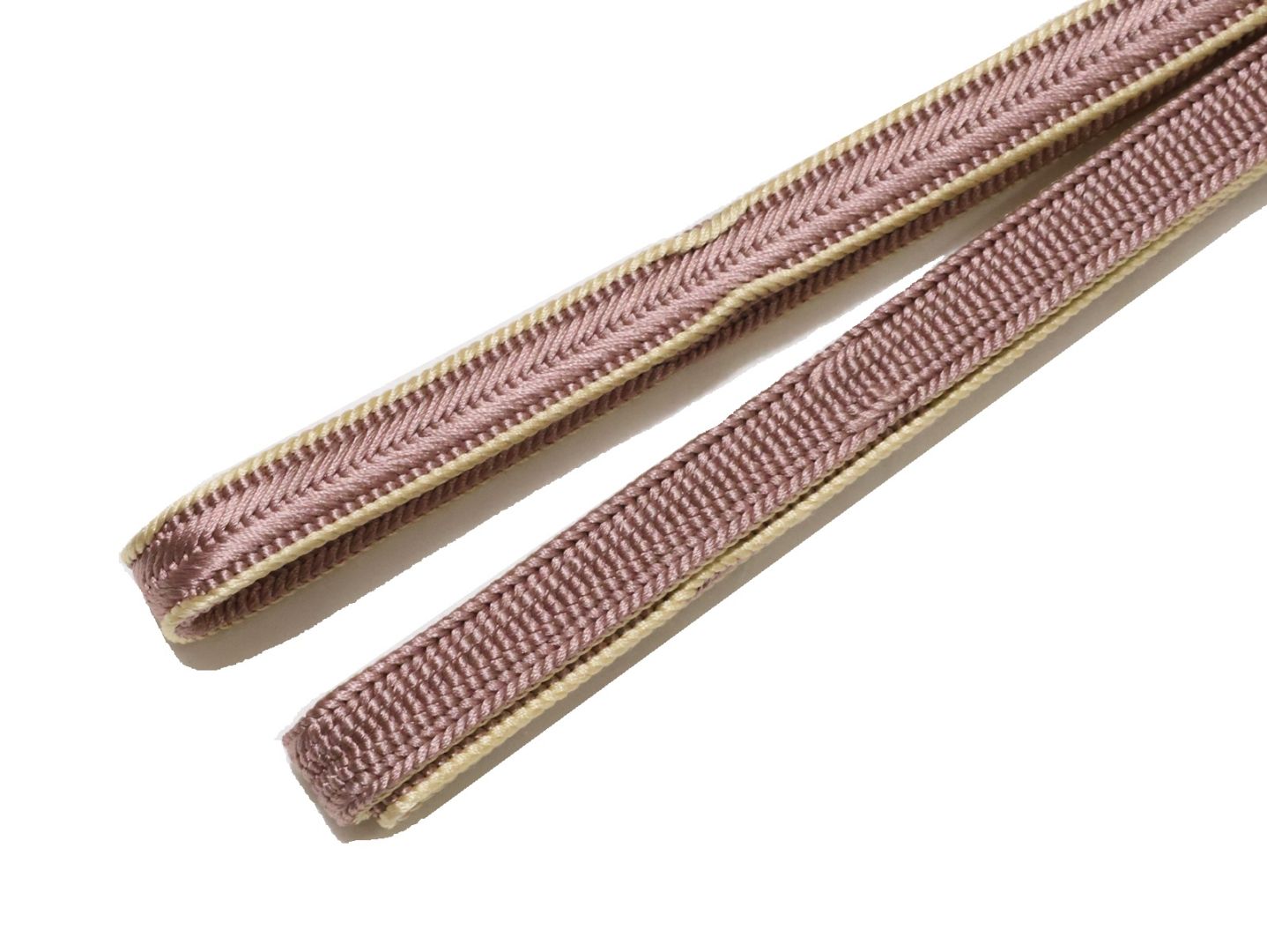 ・正絹三分紐「灰ローズ色に薄ベージュ色の縁取り(リバーシブル)」
