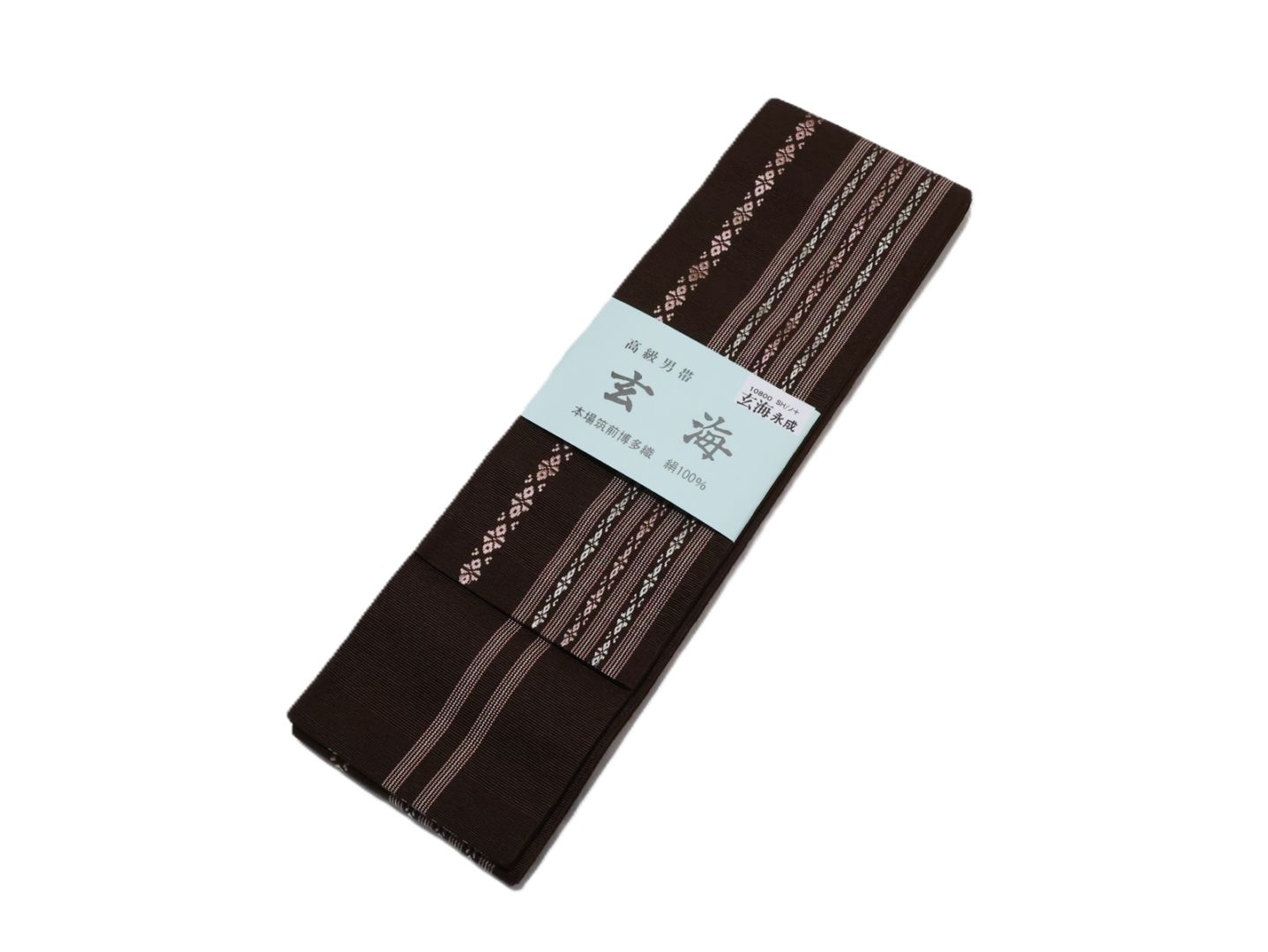 正絹博多織角帯「濃いグレー色の地に茶色とグレー色の博多献上模様」