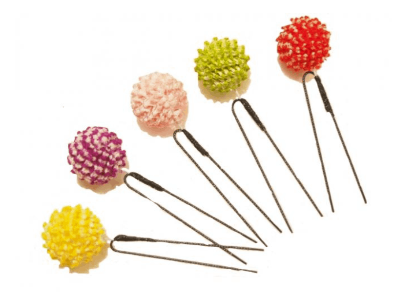 リボン髪飾り「(上)黒色とアイボリー色の市松(下)紫色(飾り紐付)」