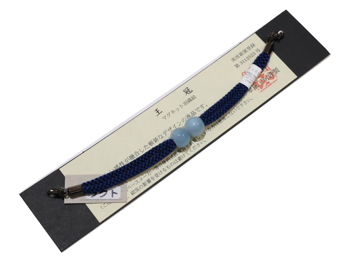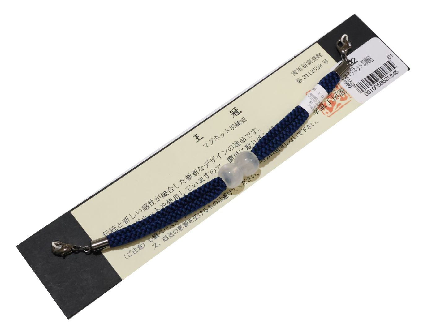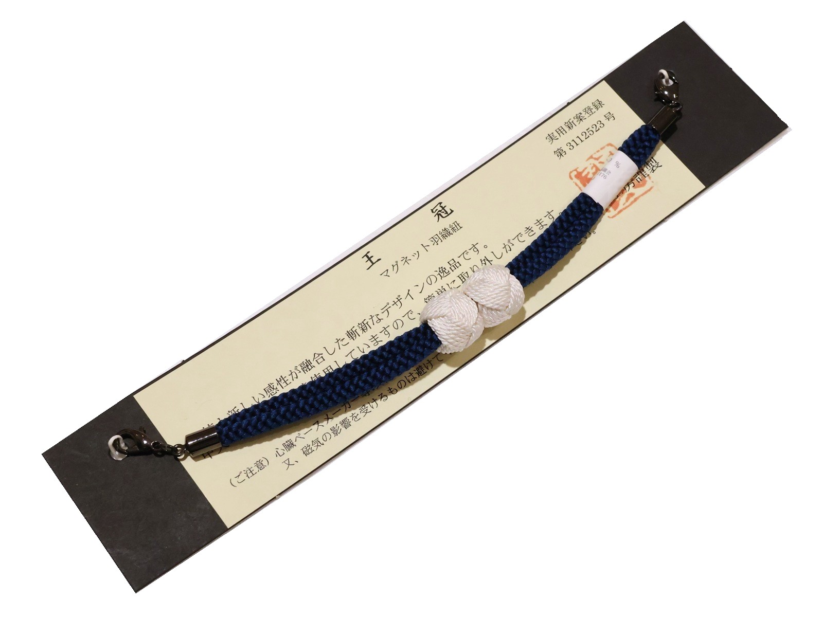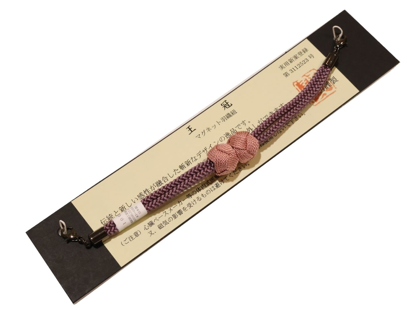マグネットタイプ羽織紐「フジ色と薄ベージュ色の組紐にフジ色(白の縁取り付)の小田巻」