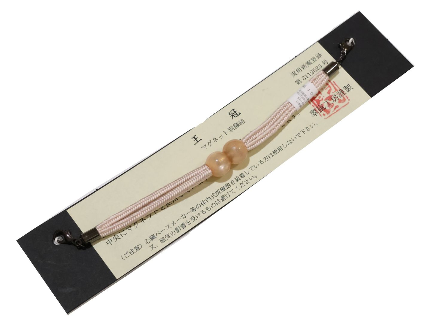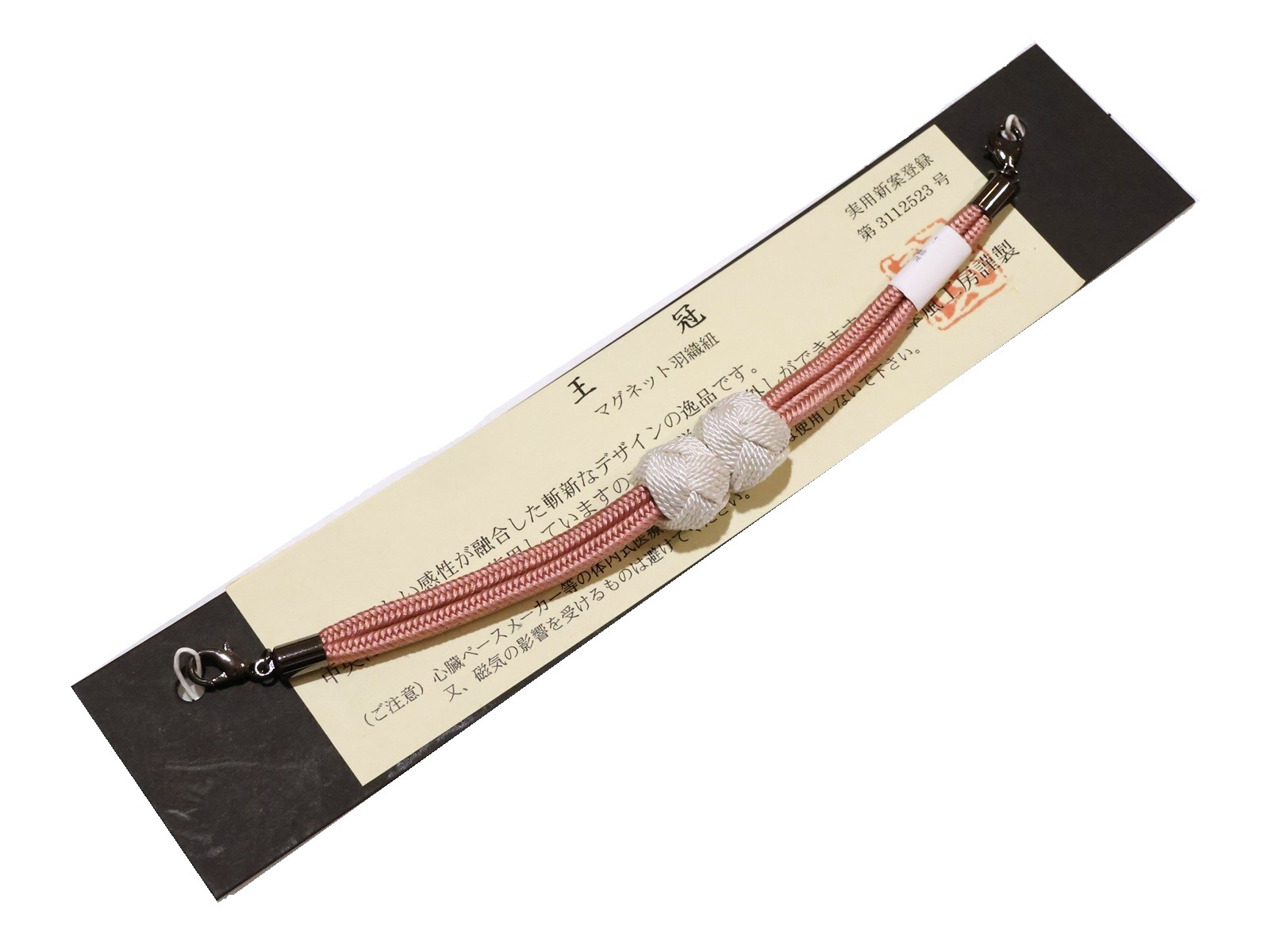 マグネットタイプ羽織紐「薄ピンク色の組紐にクリアピンク色のラクト玉」