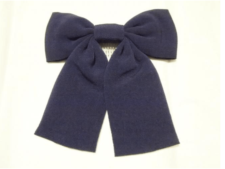 リボン髪飾り「(上)黒色とアイボリー色の市松(下)紫色(飾り紐付)」
