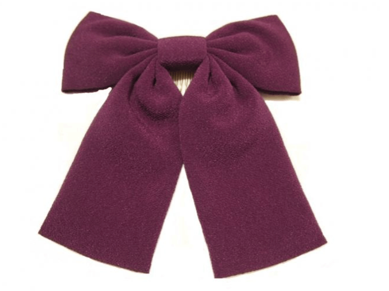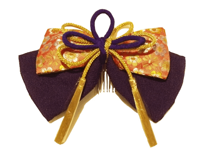 リボン髪飾り「(上)紫色の地に金の飾り紐(下)紫色の地に梅の柄」