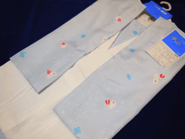 【受注生産】「袖丈49cm」ファスナー衿二部式襦袢「薄青色の地にウサギ(№39)」Mサイズ