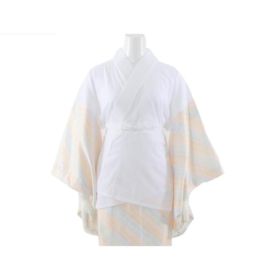 【受注商品】「袖丈49cm」ファスナー衿二部式襦袢「レインボー色の地に鱗模様(№27)」Mサイズ