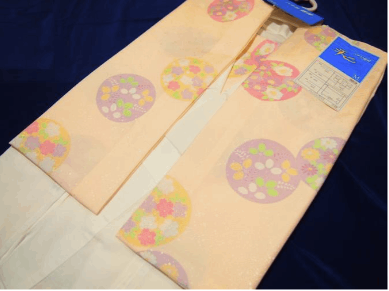 【受注生産】「袖丈49㎝」ファスナー衿二部式襦袢「サーモンピンク色の地に花丸(№51)」Mサイズ