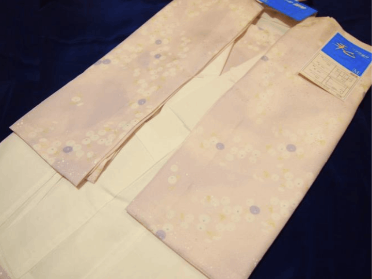 【受注生産】「袖丈49㎝」ファスナー衿二部式襦袢「薄ピンク色の地に万寿菊(№40)」Mサイズ