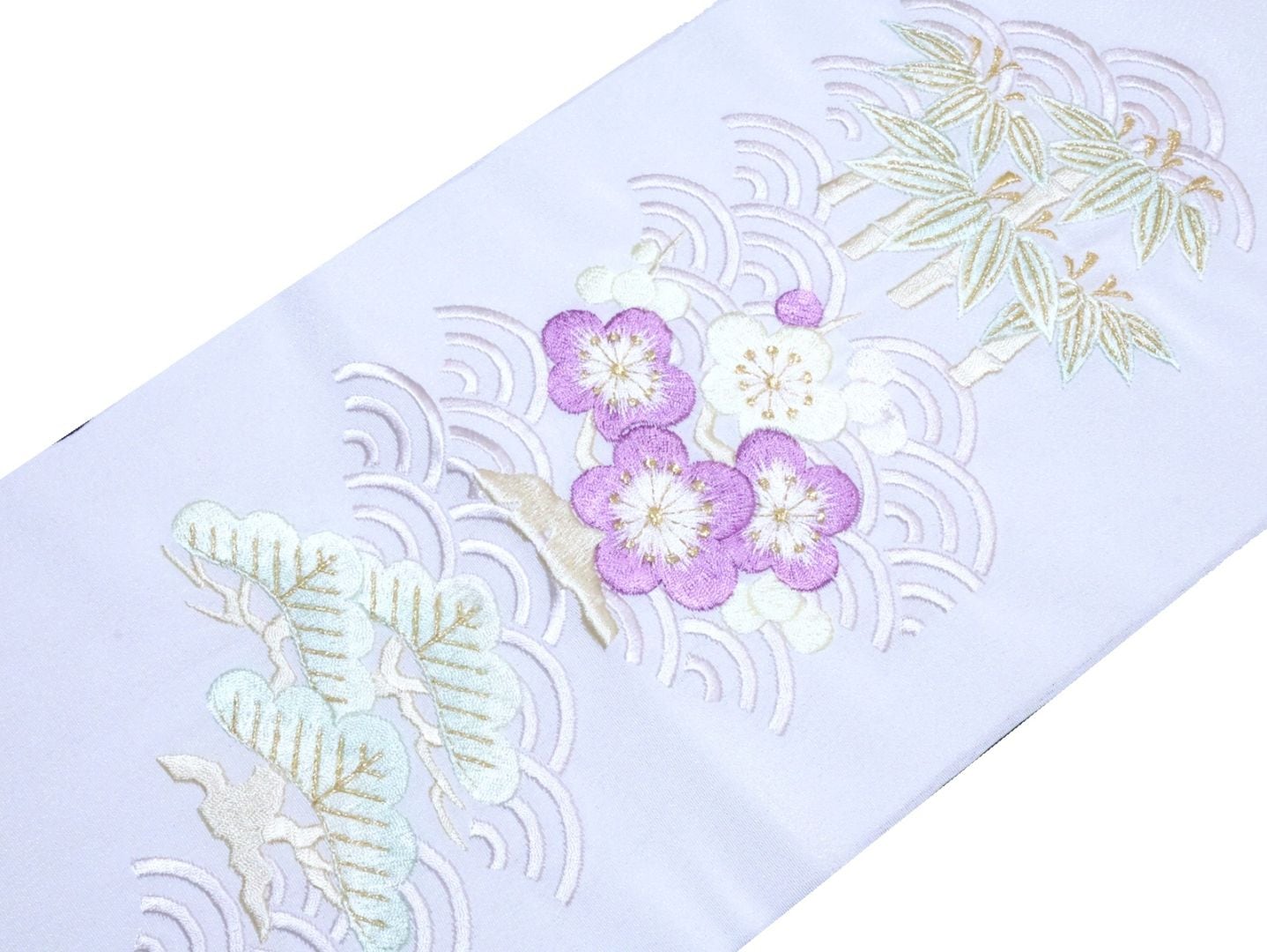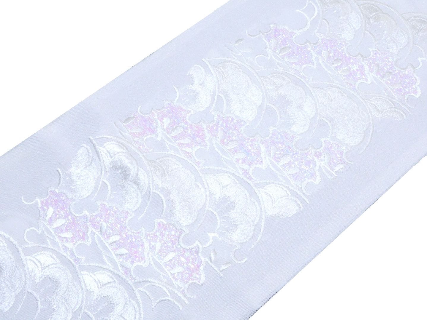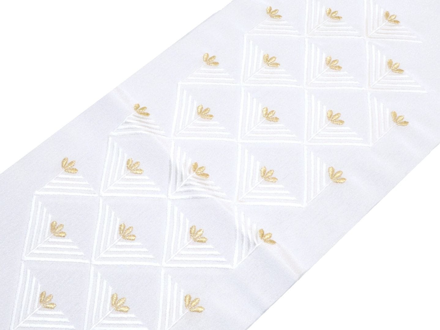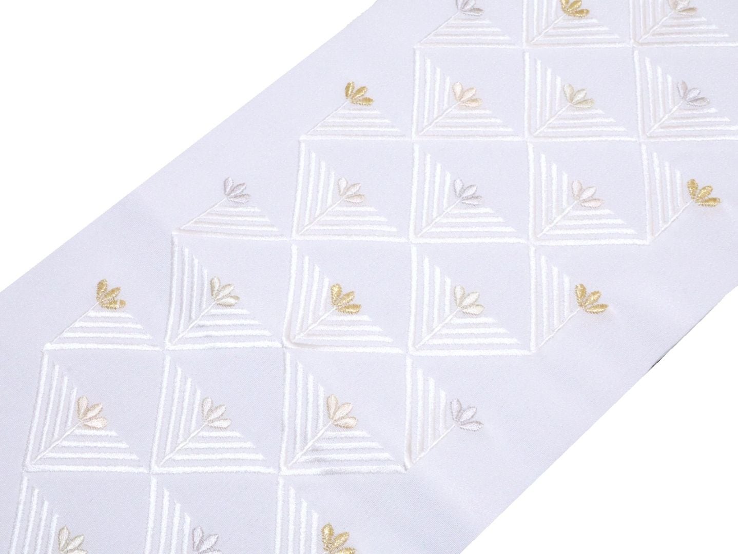 刺繍半衿「白色の地に薄紫色と薄クリーム色の幾何学模様の刺繍」