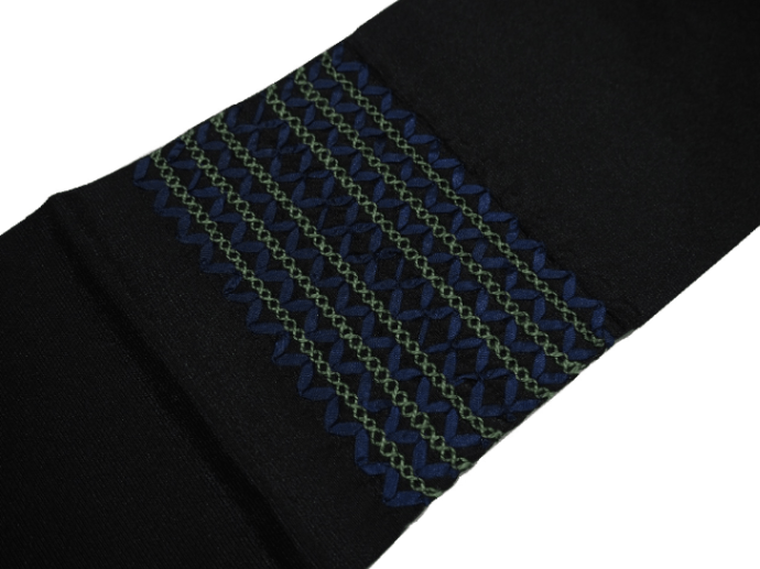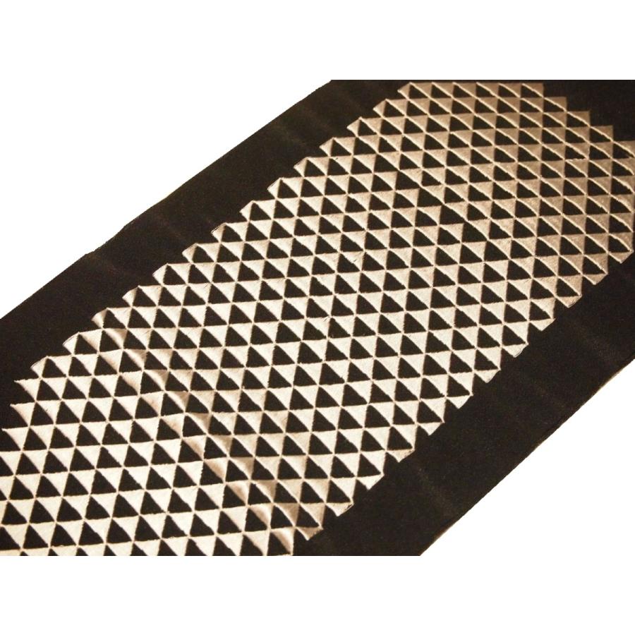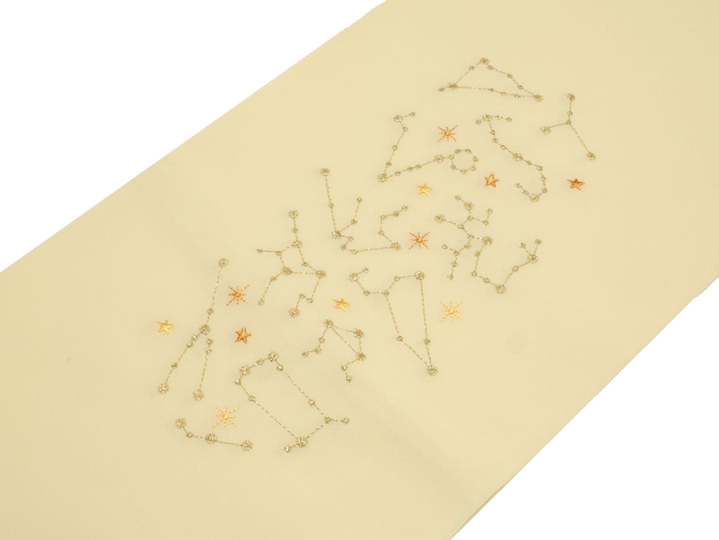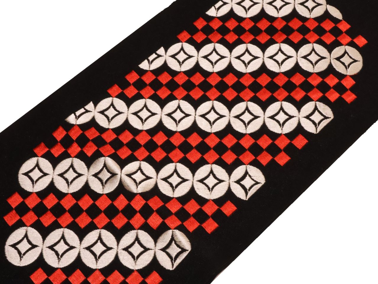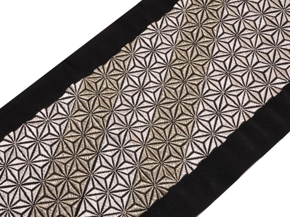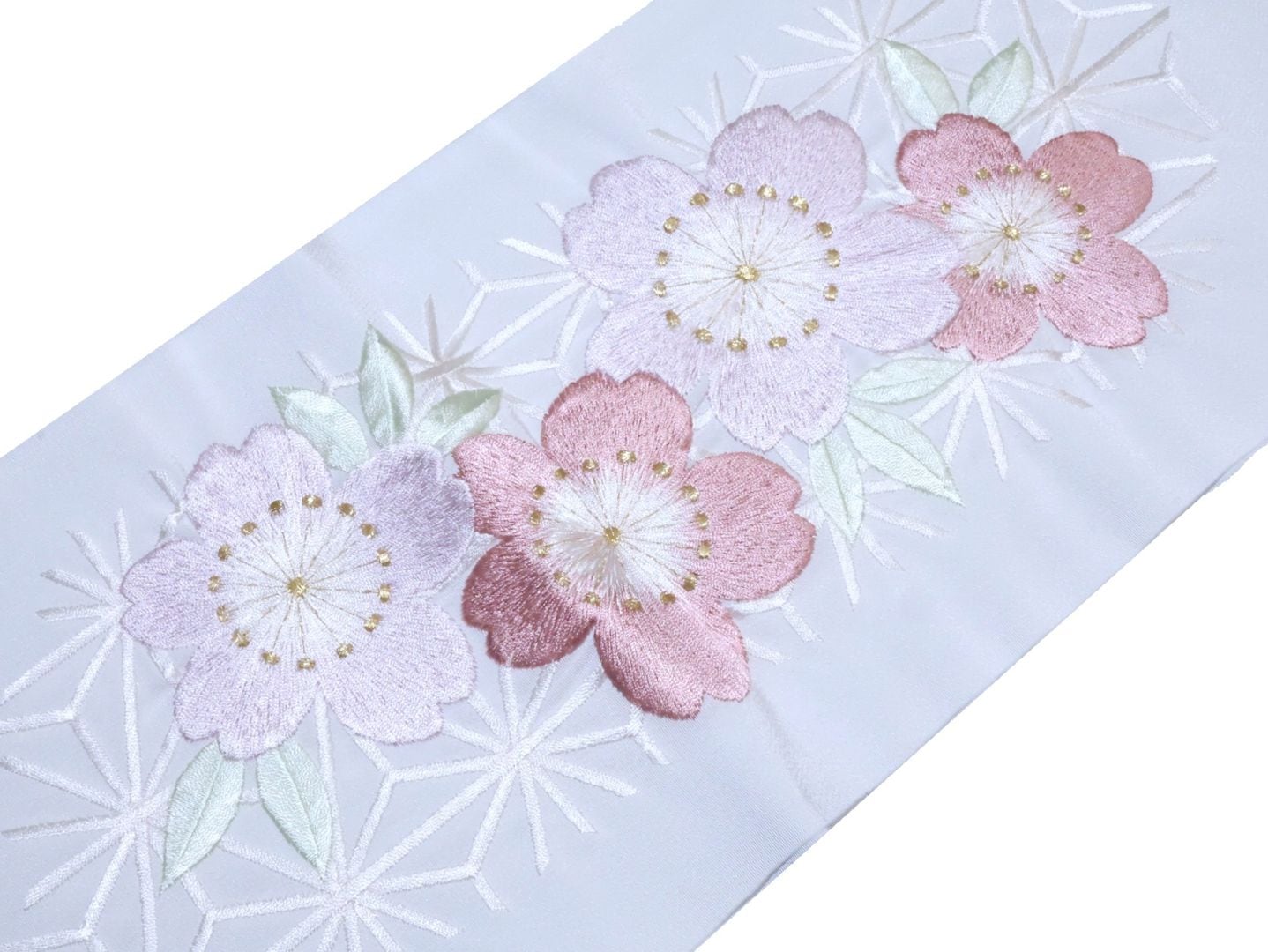 刺繍半衿「白色の地に薄紫色と薄クリーム色の幾何学模様の刺繍」