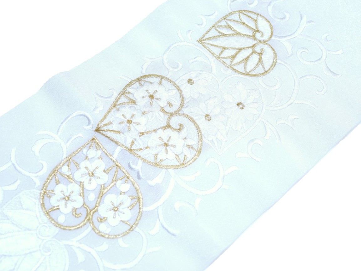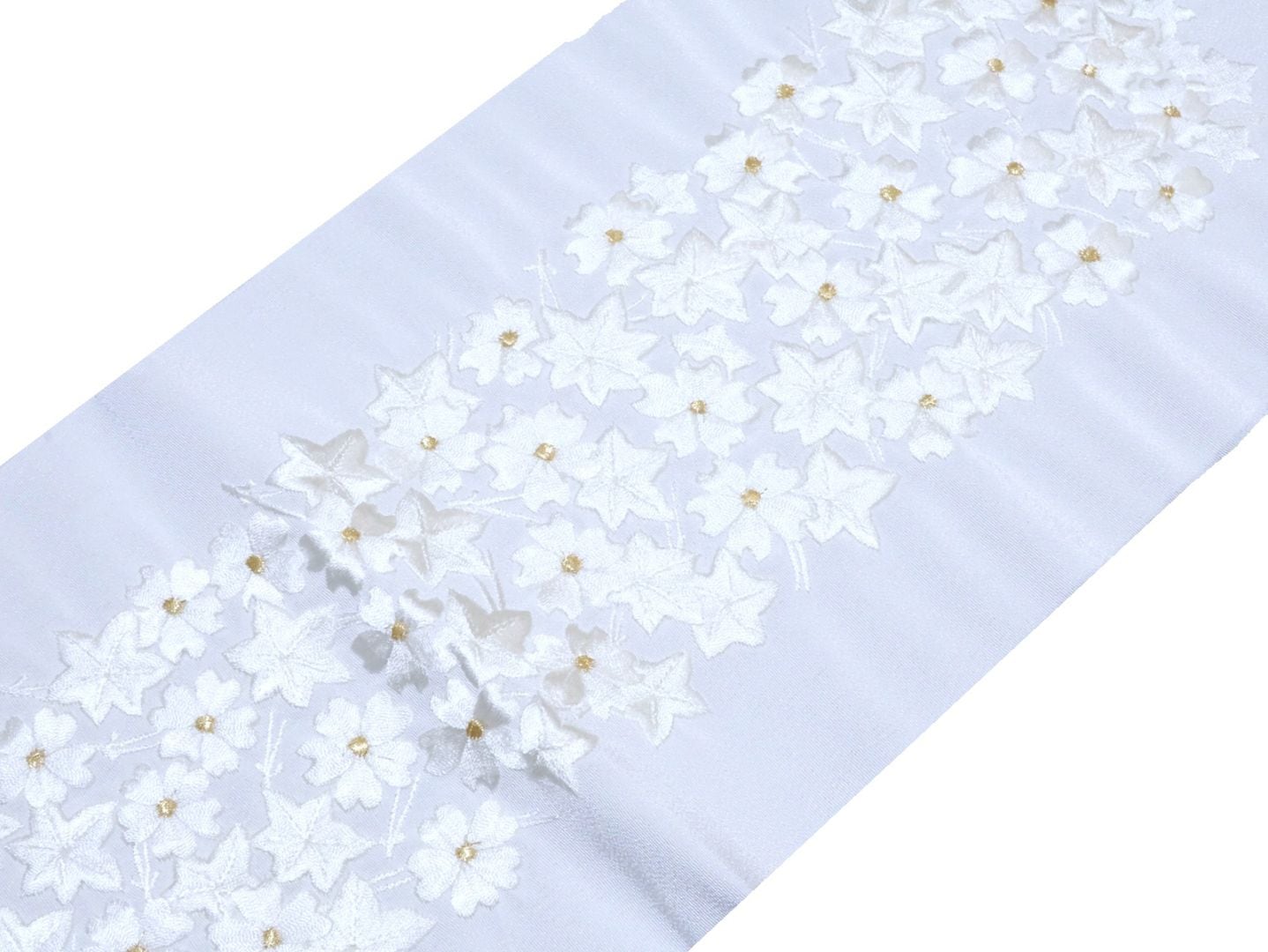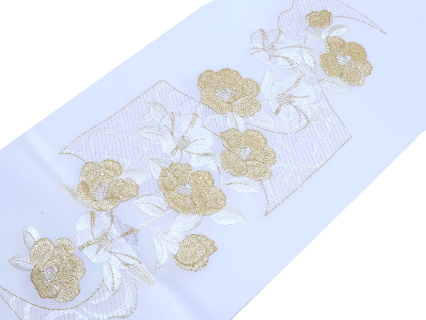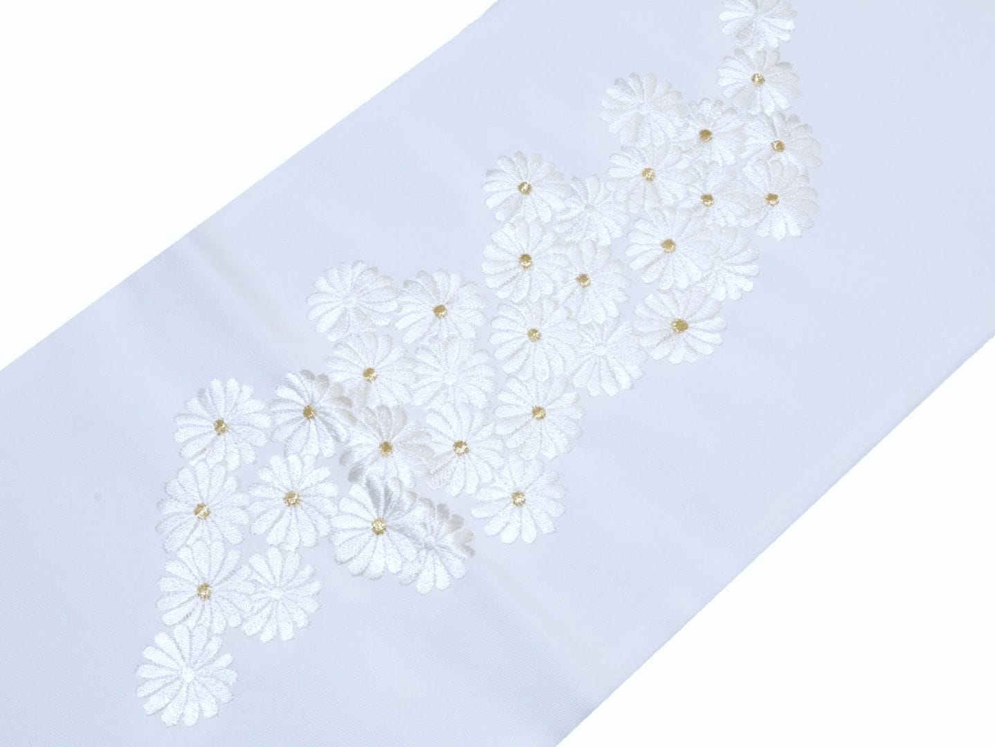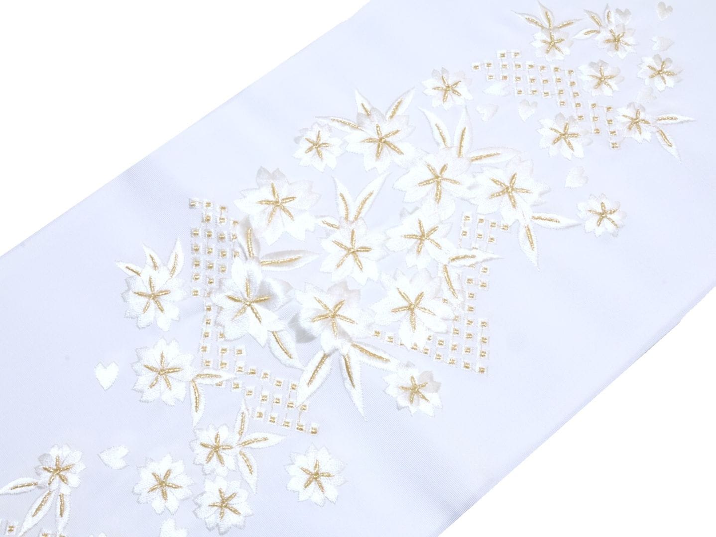 ・刺繍半衿「白色の地に白色と金色、ベージュ色、グレー色の若松の刺繍」