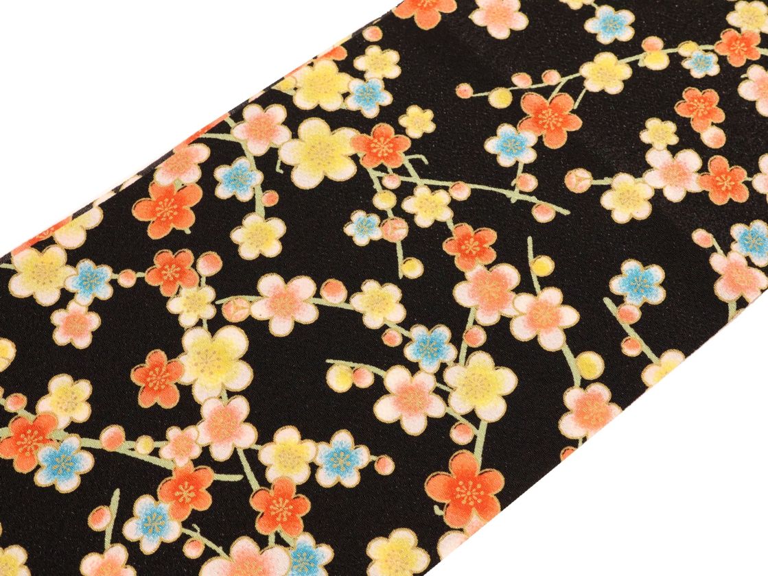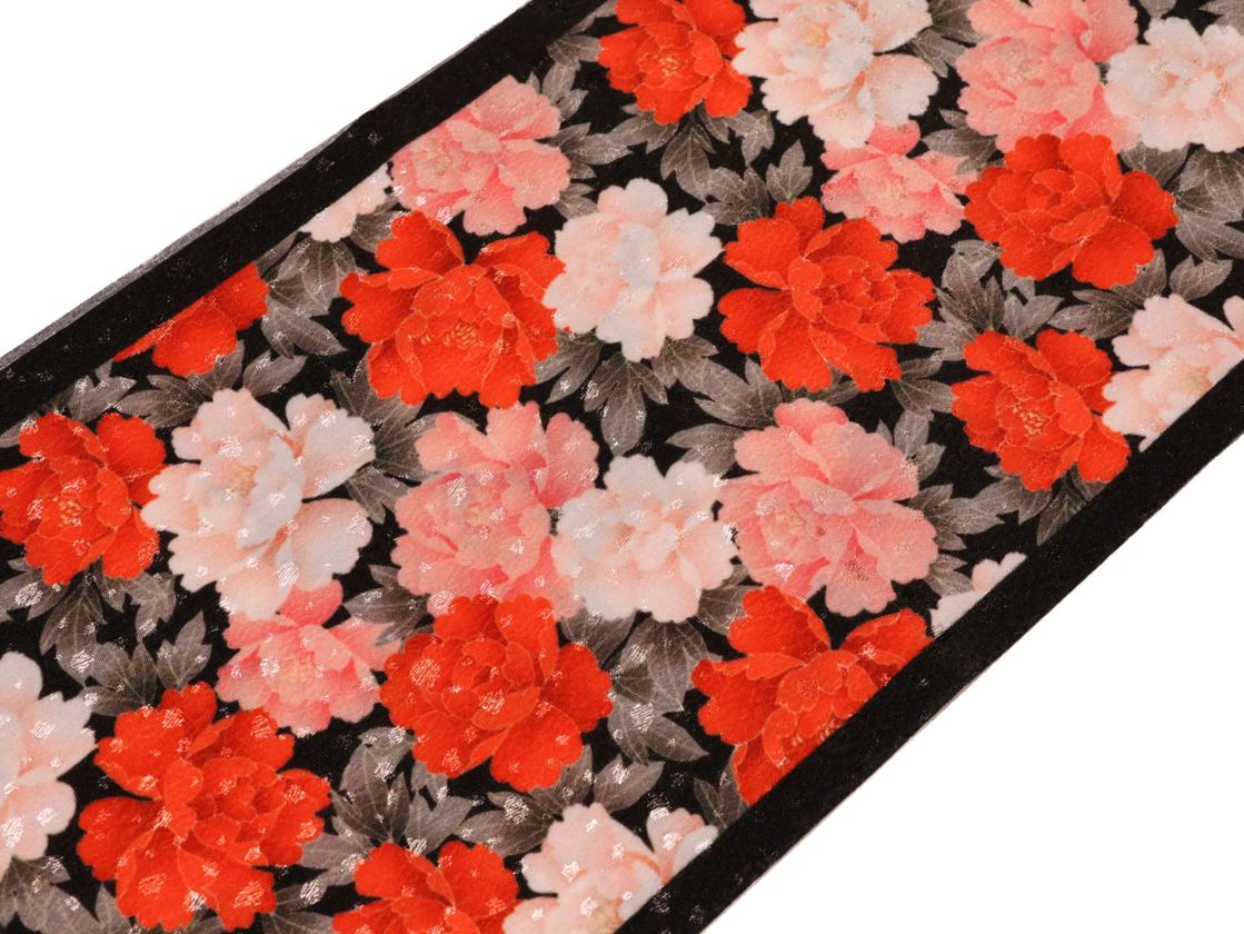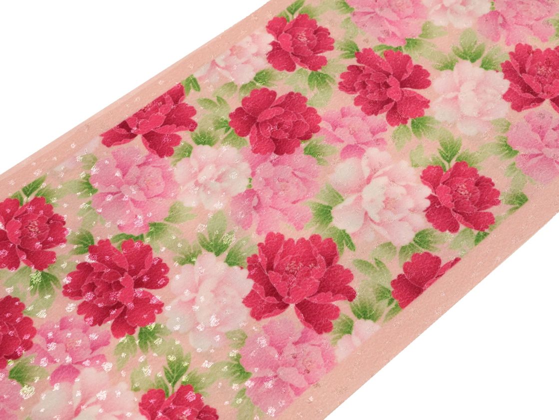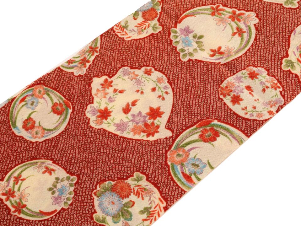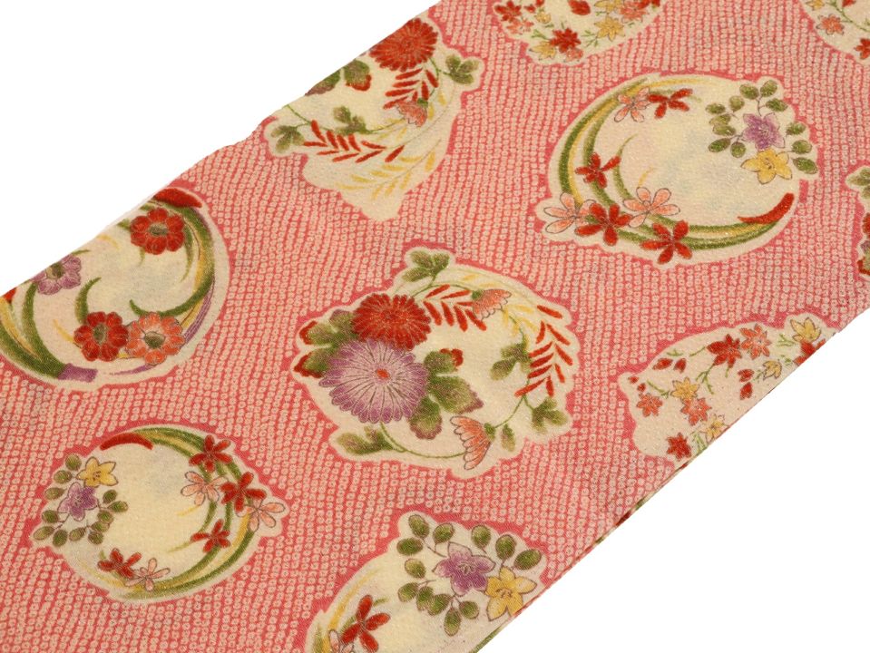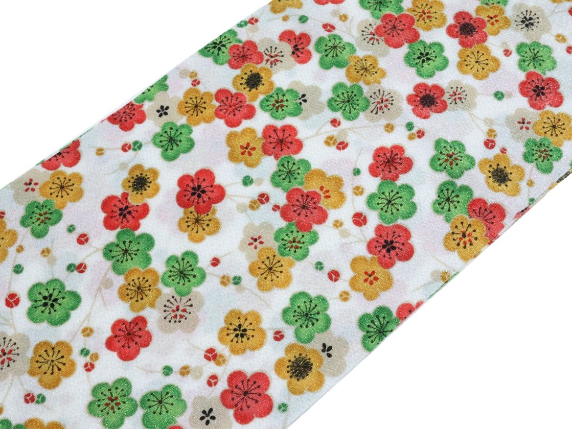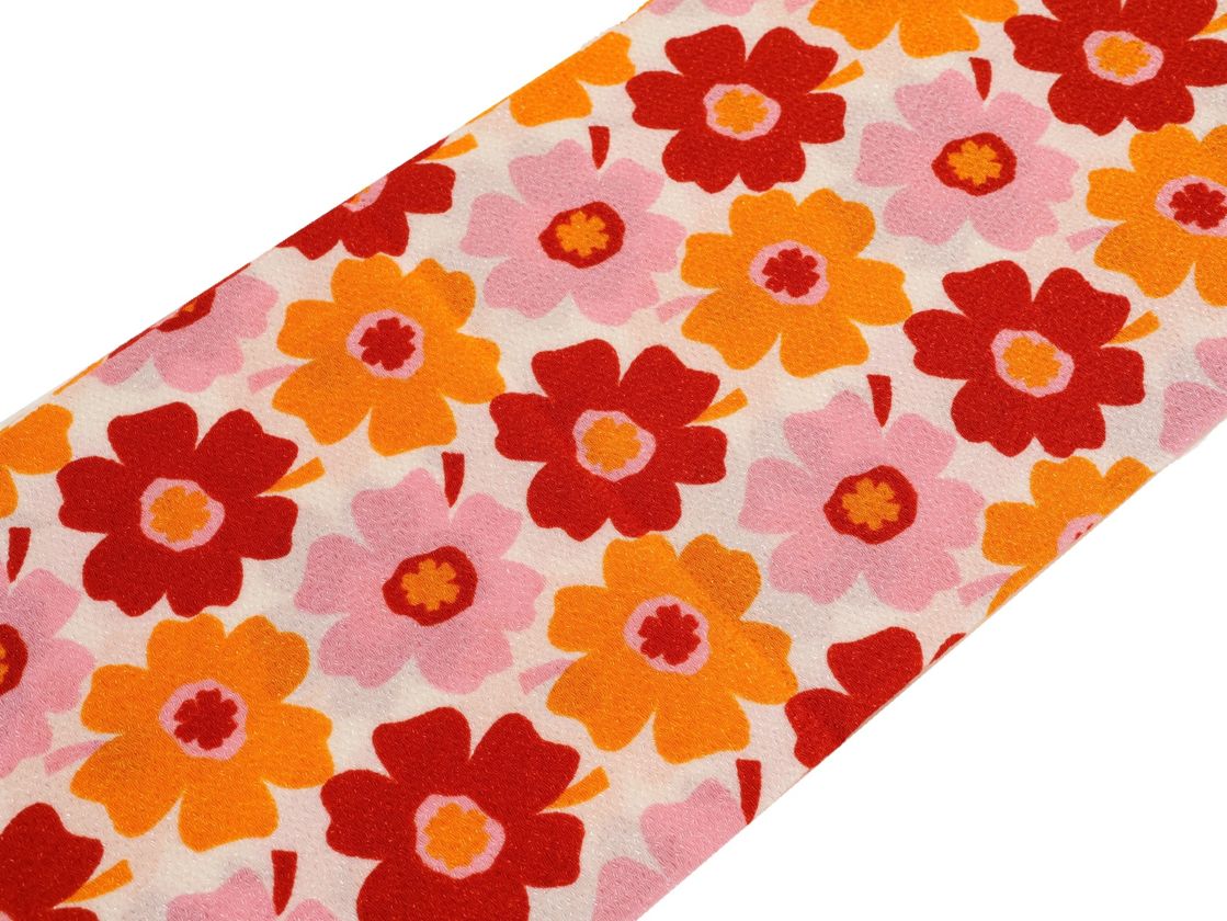 洗える柄物半衿「白色の地に赤色、オレンジ色、ピンク色の花の柄」