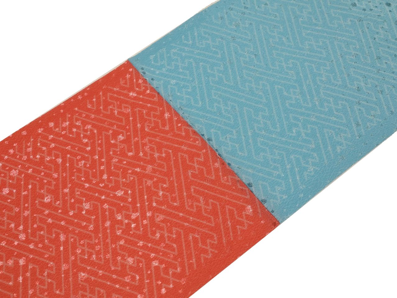 洗える柄物半衿「濃いピンク色と濃い水色の地にサヤ型の地模様」