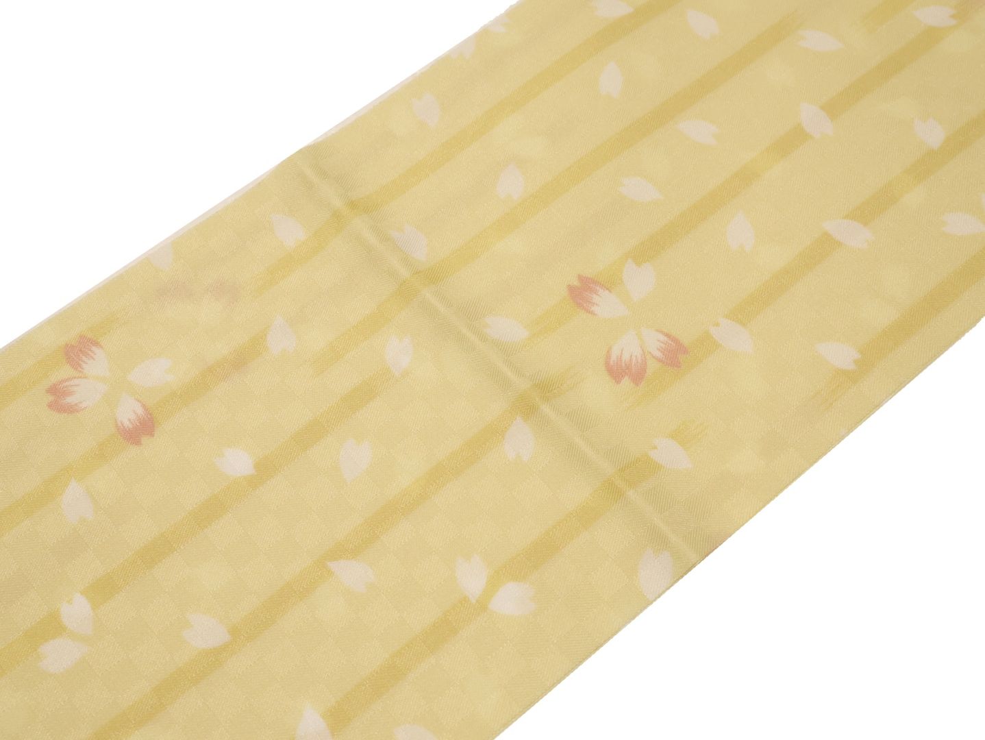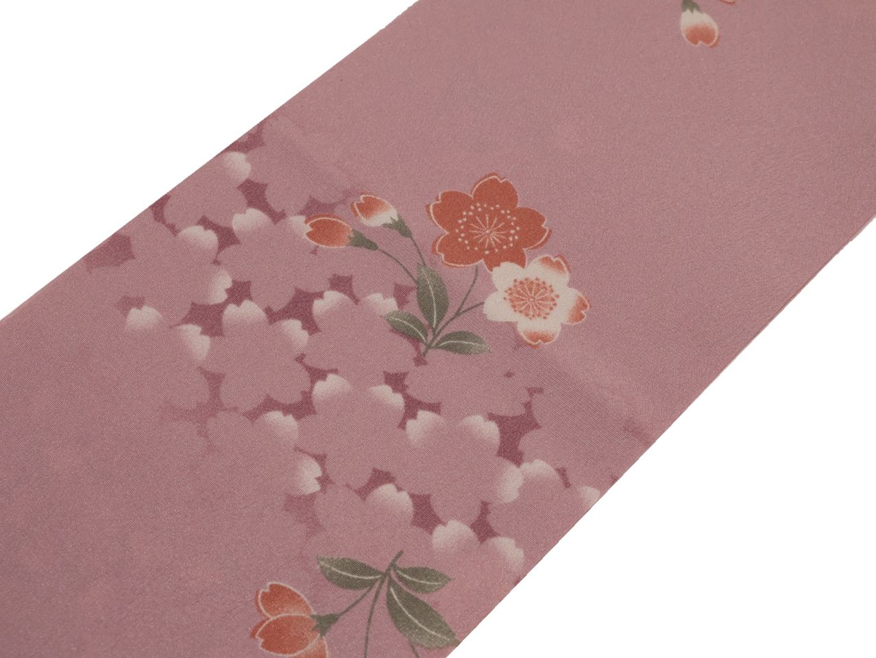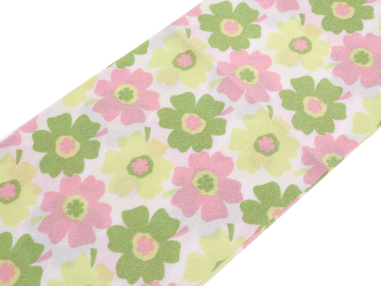 洗える柄物半衿「灰白色の地に薄抹茶色、黄緑色、ピンク色の花の柄」