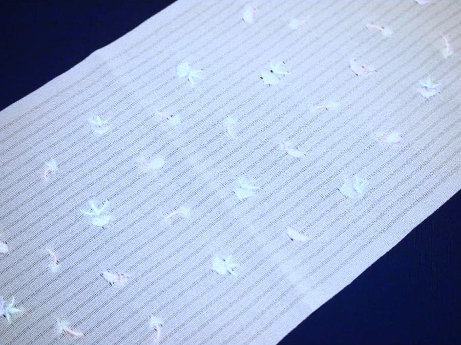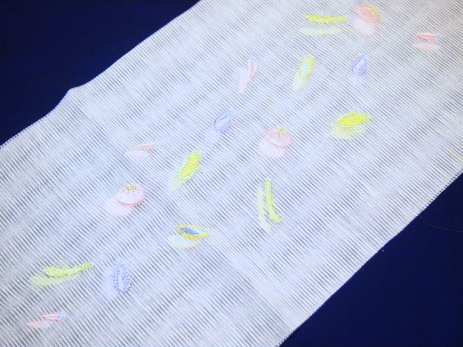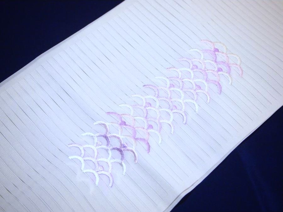 ・夏物正絹刺繍半衿「白地に白色と薄ピンク色、薄緑色の源氏香の柄」