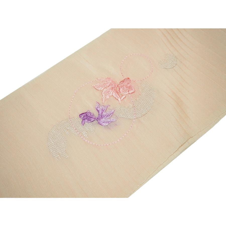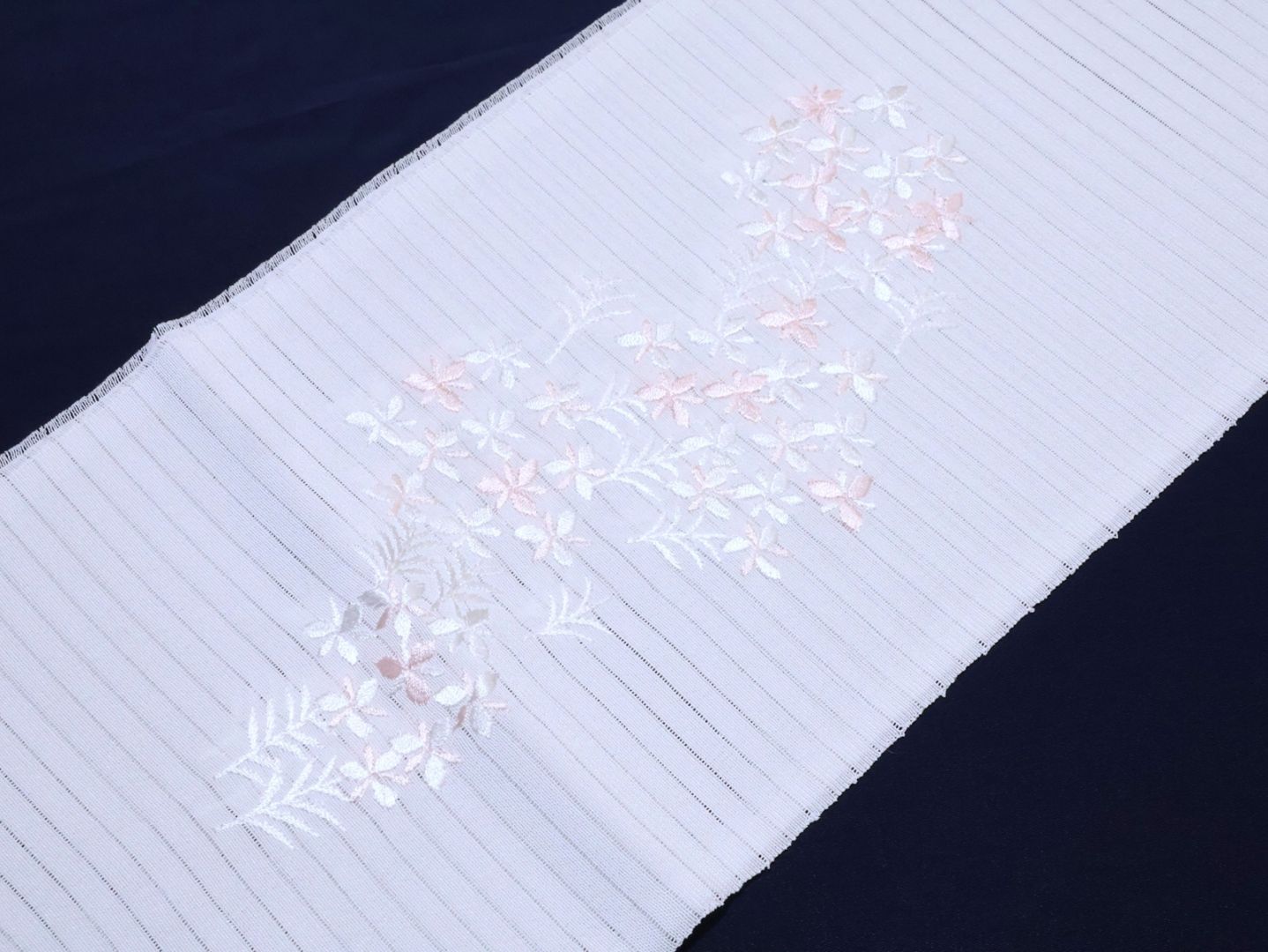 ・夏物刺繍半衿(絽)「白色の地にピンクベージュのあざみの刺繍」