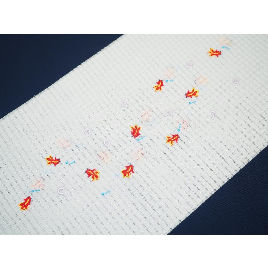 夏物刺繍半衿「白地に薄紫色の金魚とラインストーン(爽竹生地使用)」