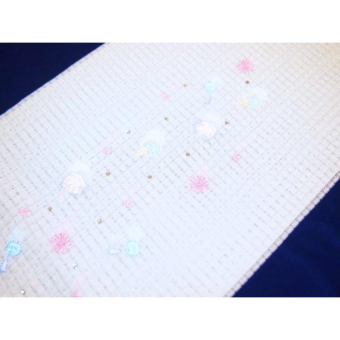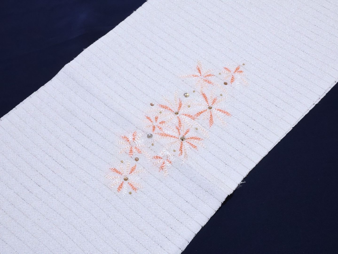 ・夏物刺繍半衿(絽)「白色の地に濃淡のピンク色の花火の刺繍」