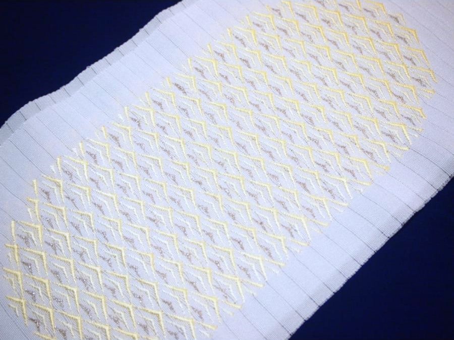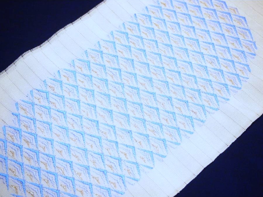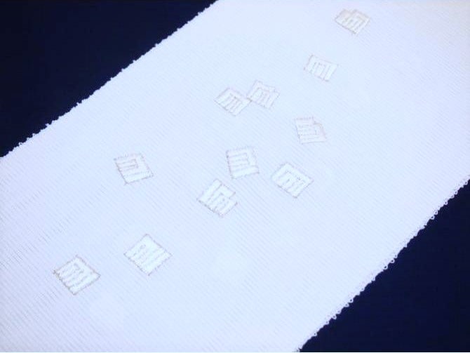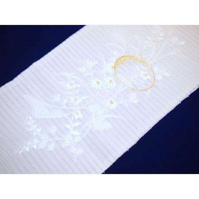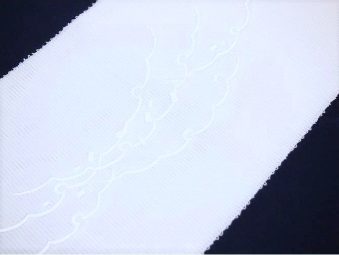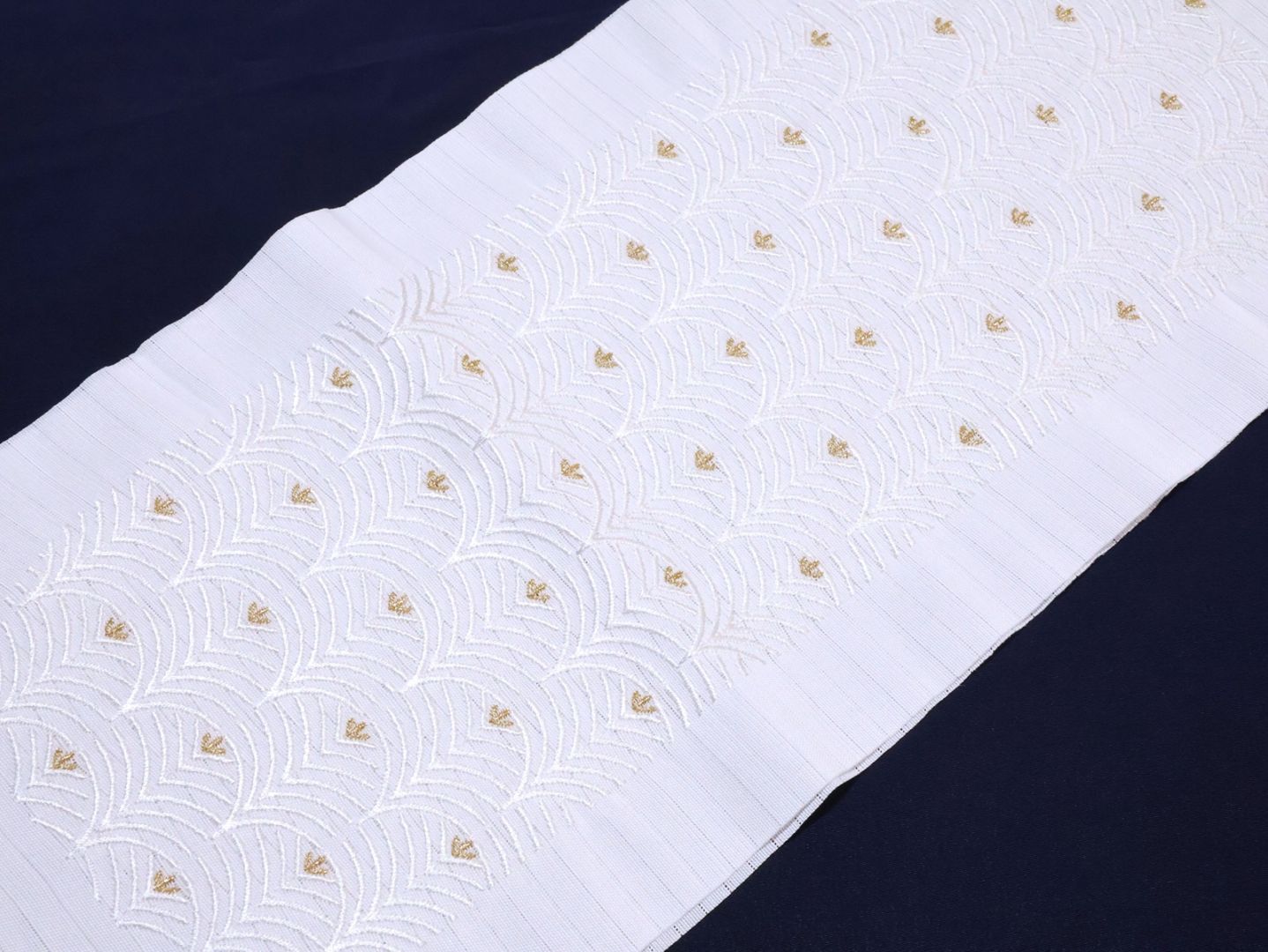 ・【セール】夏物正絹刺繍半衿「白地に白と金糸の菱模様の刺繍」