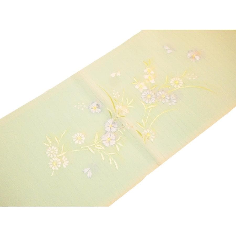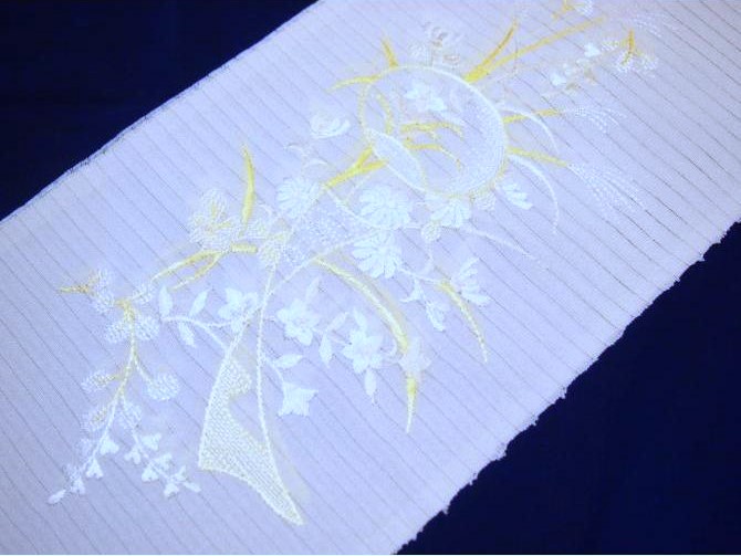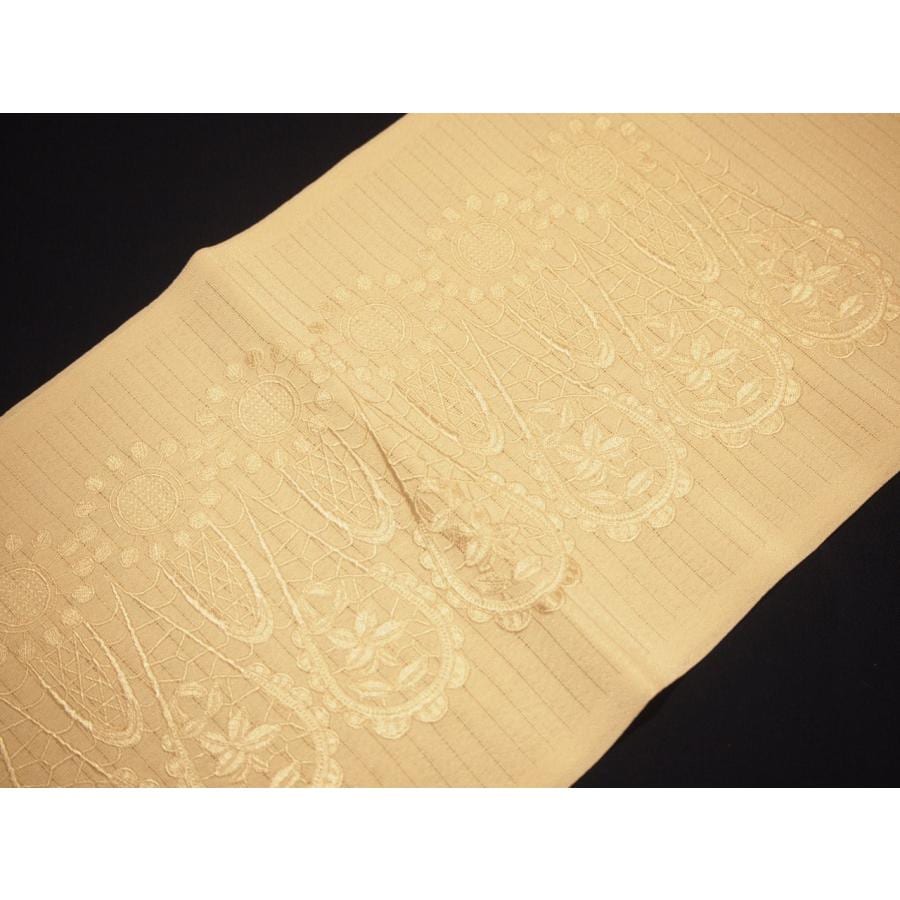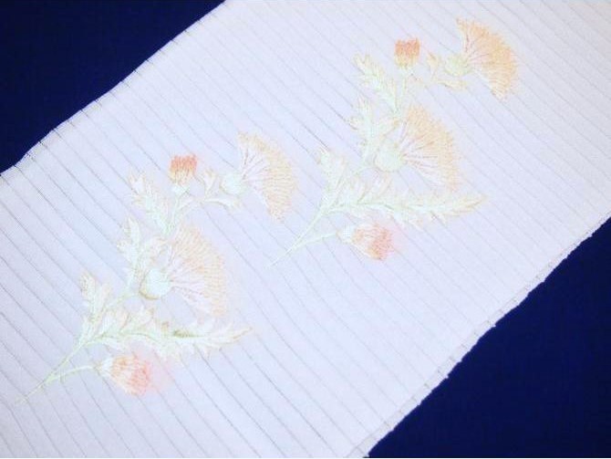・夏物刺繍半衿(絽)「クリーム色の地にクリーム色のあざみの刺繍」