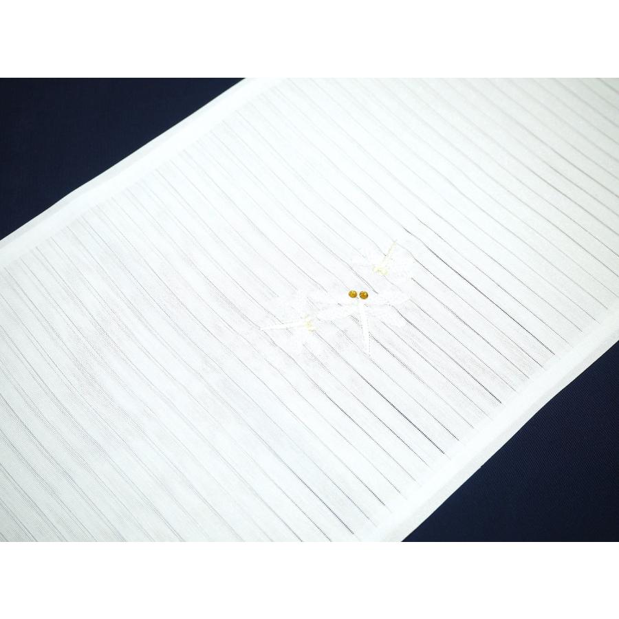 ・夏物刺繍半衿(縦絽)「白色の地に薄ピンク色と薄紫色のトンボの刺繍」