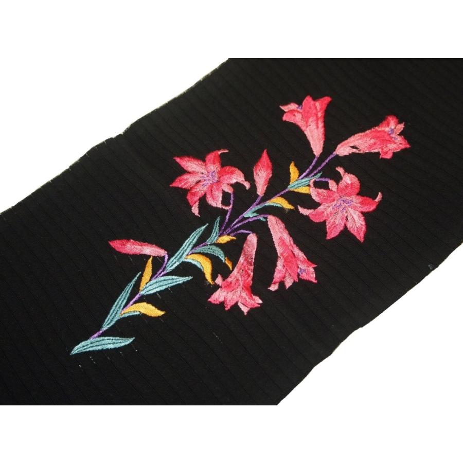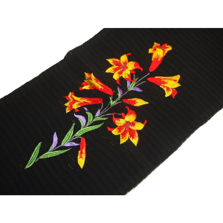 ・夏物刺繍半衿(絽)「黒色の地に赤色と黄色のユリの花の刺繍」