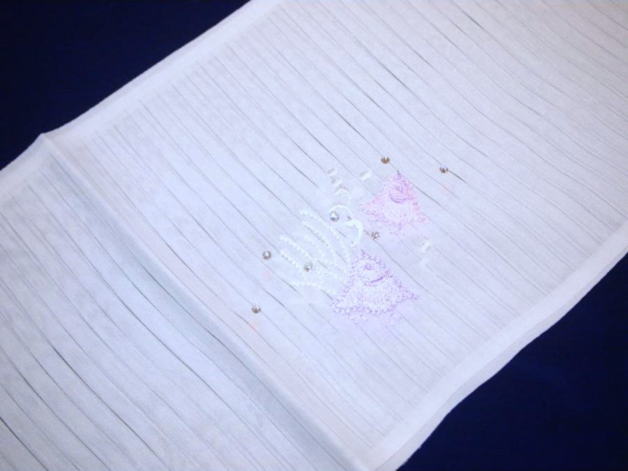 ・夏物刺繍半衿(縦絽)「白地にフジ色とローズの星座の刺繍とラインストーン」