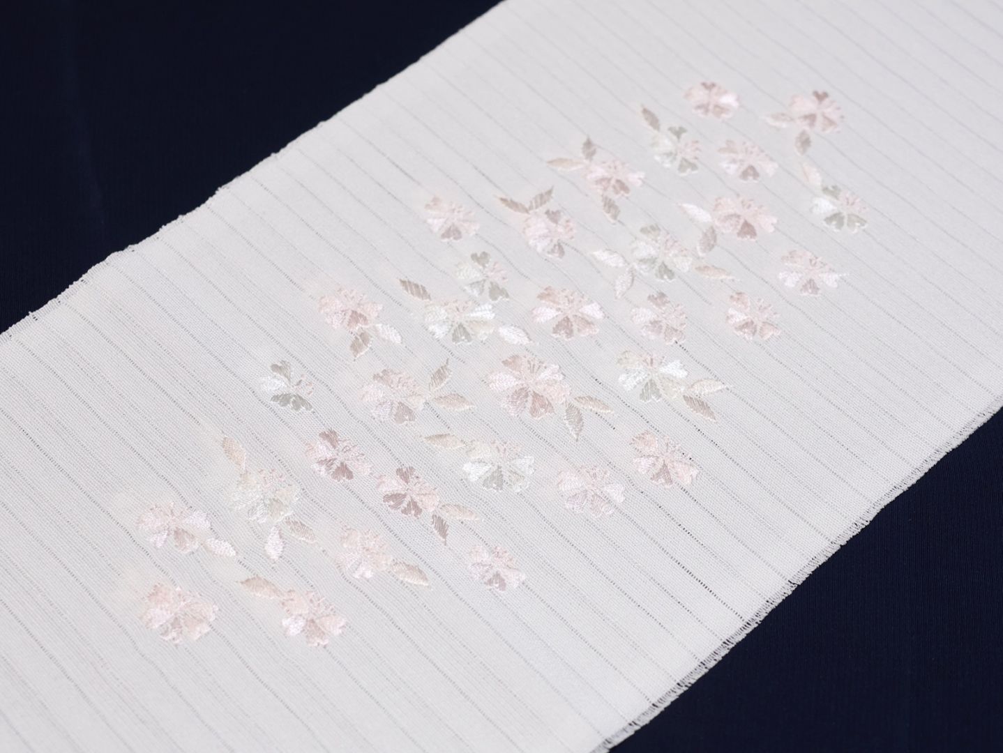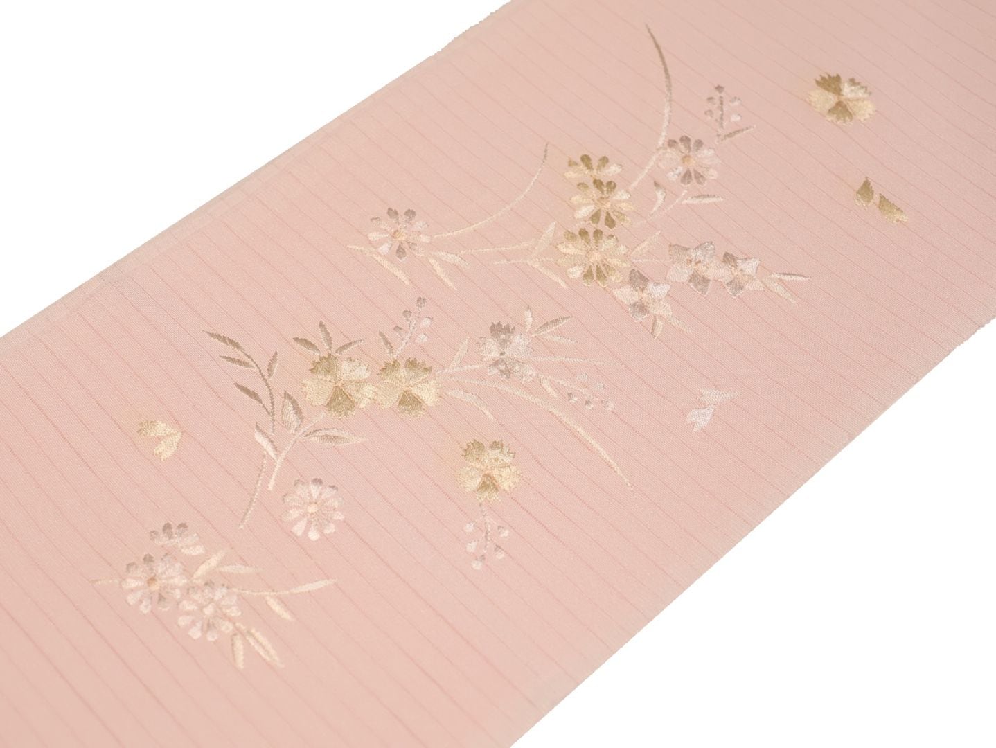 ・夏物刺繍半衿(絽)「白色の地に薄ピンク色のなでしこと桔梗の刺繍」