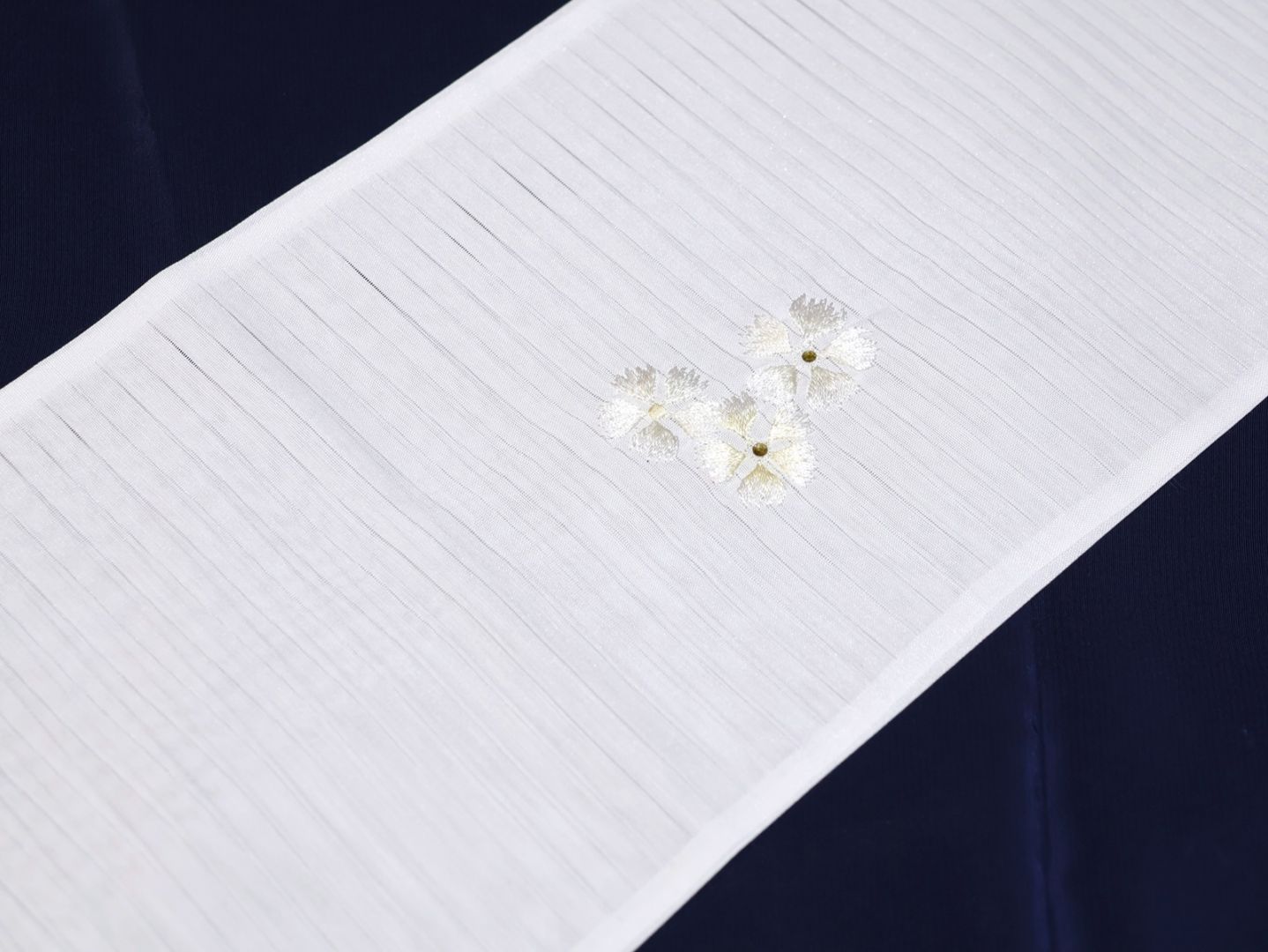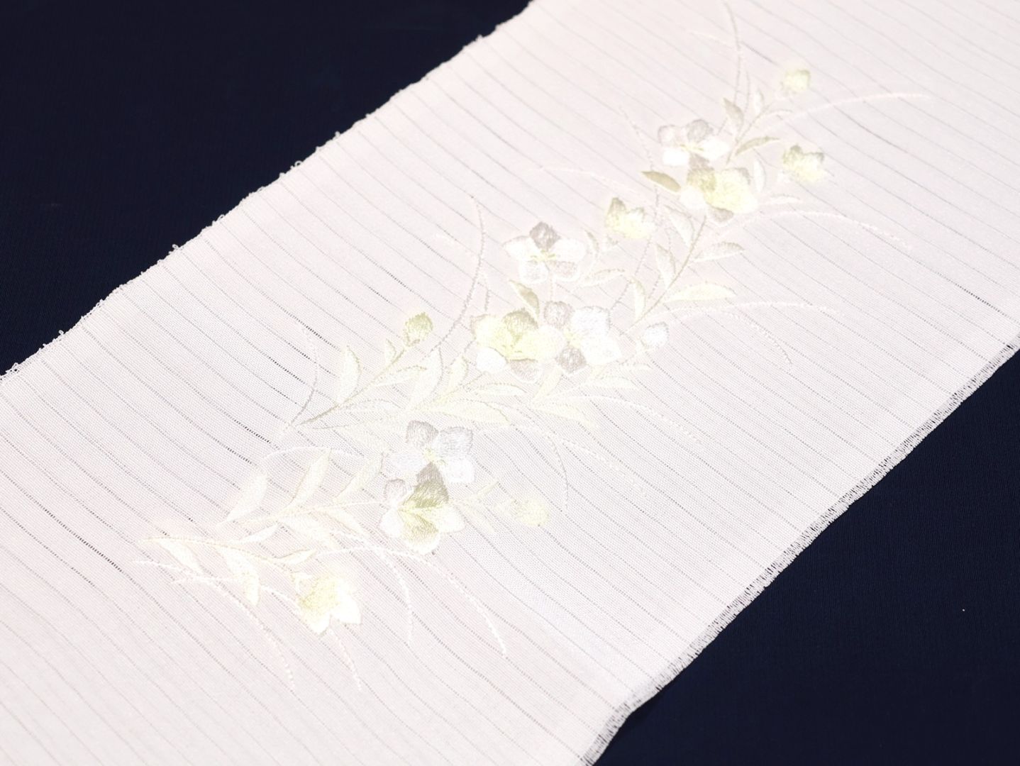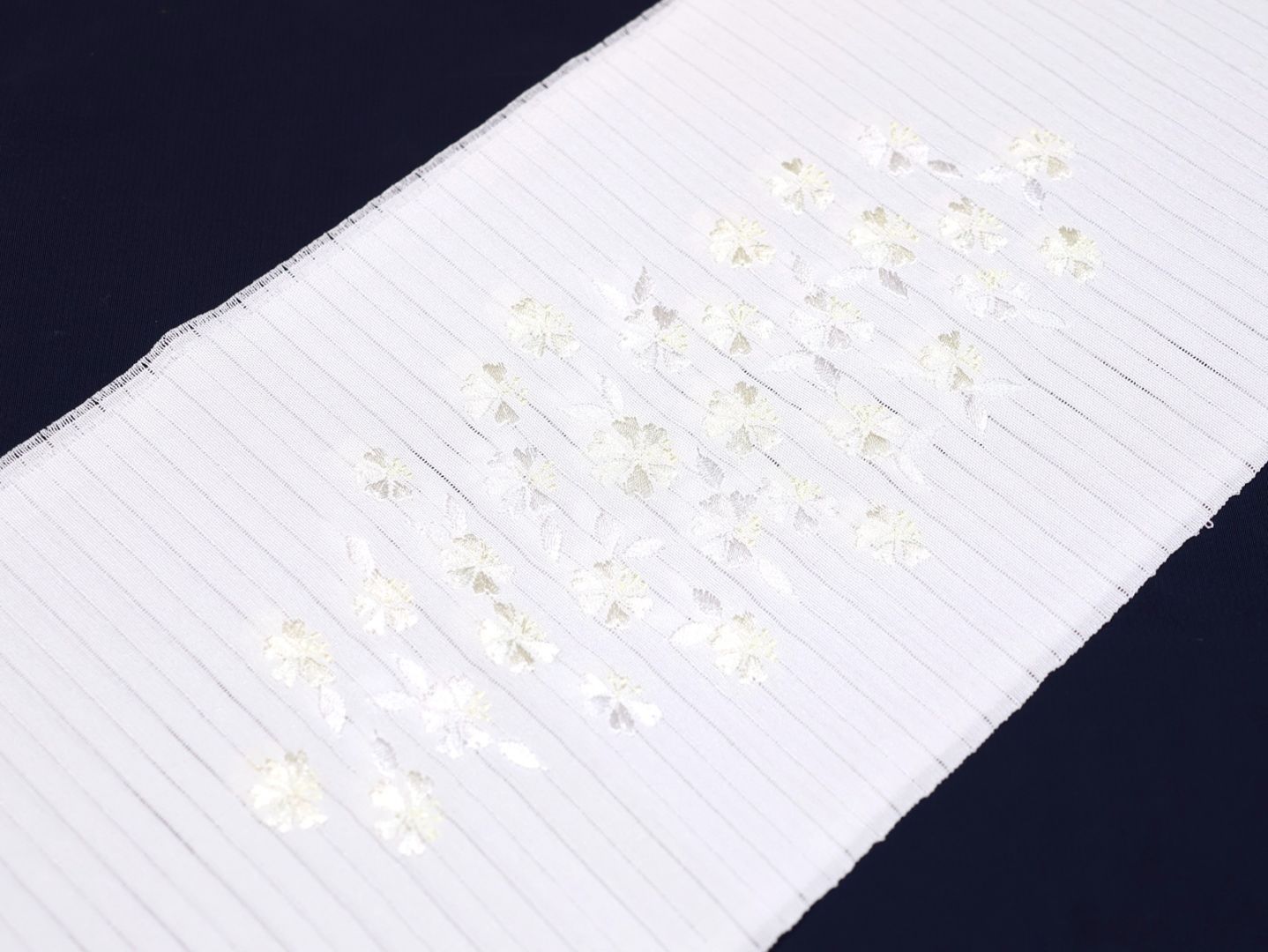 ・夏物刺繍半衿「白色の地に薄クリーム色と白色のなでしことラインストーン」