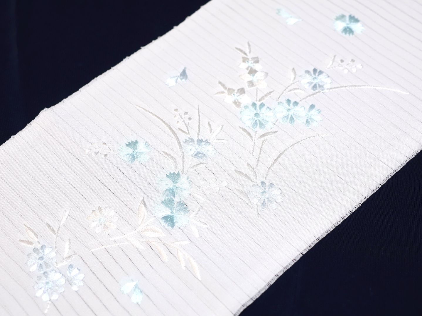 ・夏物刺繍半衿(絽)「白色の地に水色のなでしこと桔梗の刺繍」