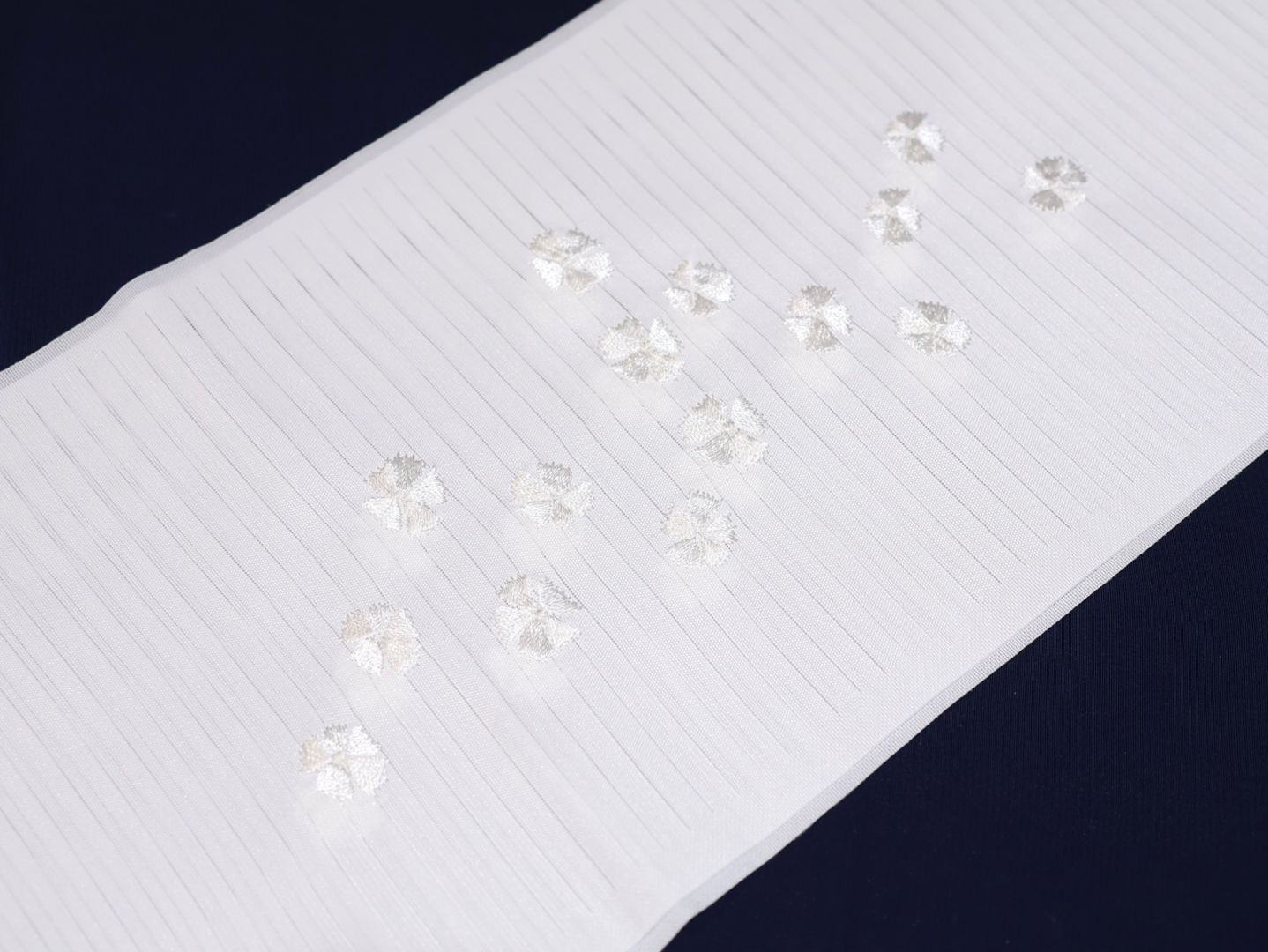 夏物刺繍半衿「白色の地に薄紫色のなでしこの刺繍(ラメ糸入り)」