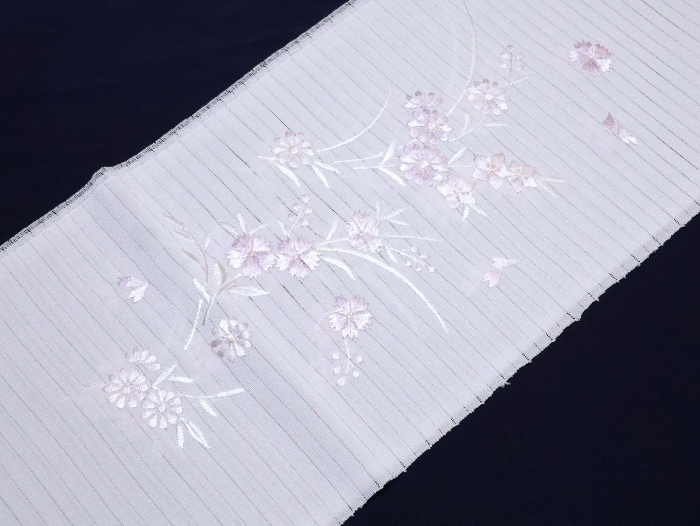 ・夏物刺繍半衿(絽)「白色の地に薄紫色のなでしこと桔梗の刺繍」