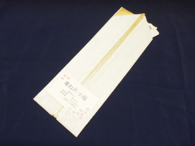 リバーシブル重ね衿(棒衿仕立て)「白色(桜の地模様)と金色」