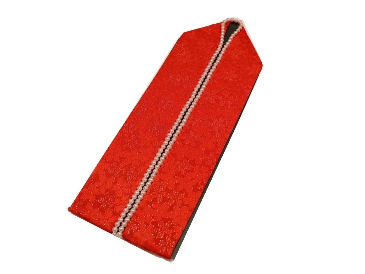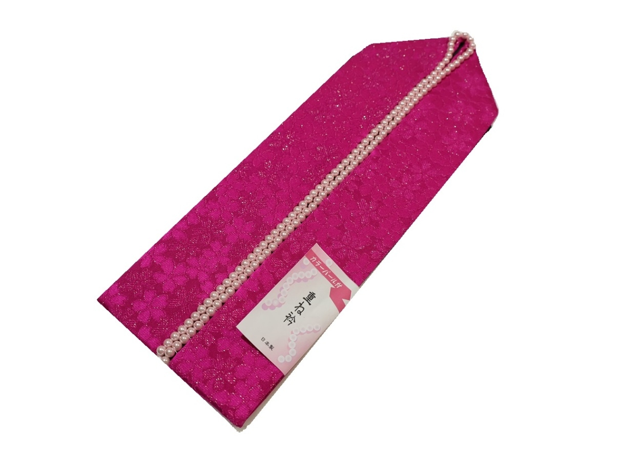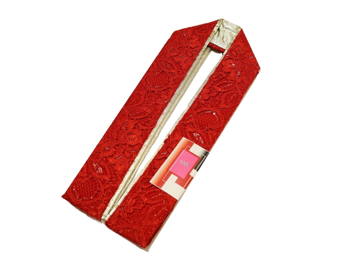 リバーシブル重ね衿(棒衿仕立て)「赤色(桜の地模様)と金色」