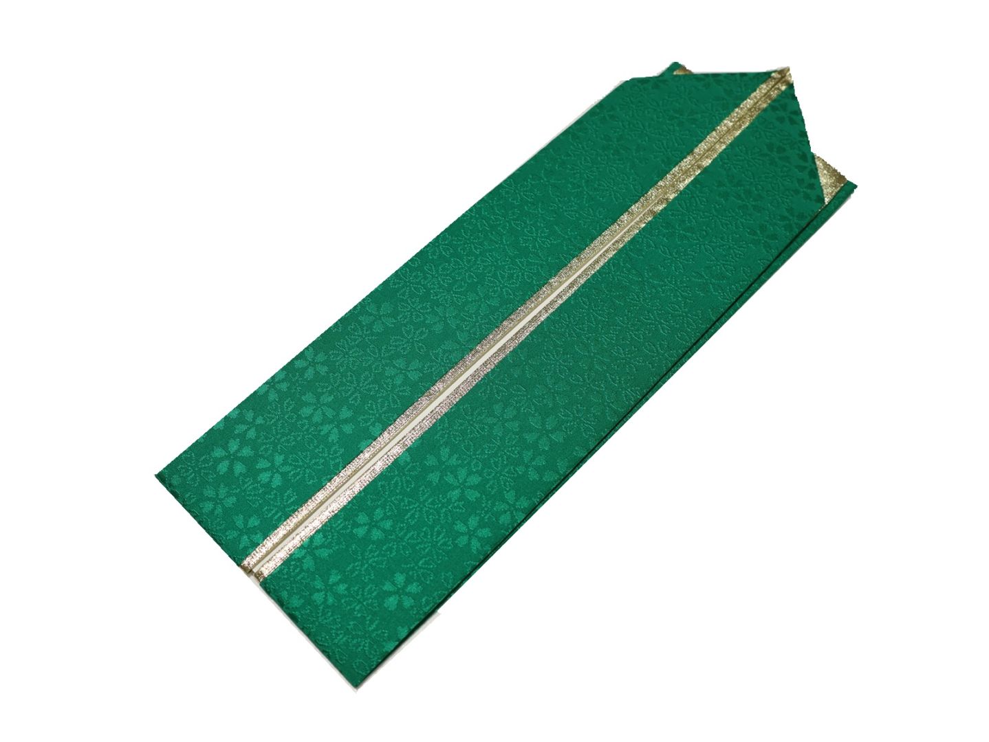 リバーシブル重ね衿(棒衿仕立て)「緑色(桜の地模様)と金色」