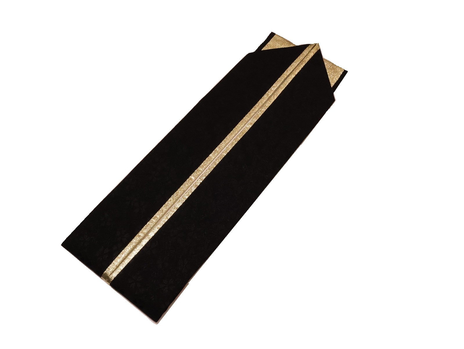リバーシブル重ね衿(棒衿仕立て)「黒色(桜の地模様)と金色」