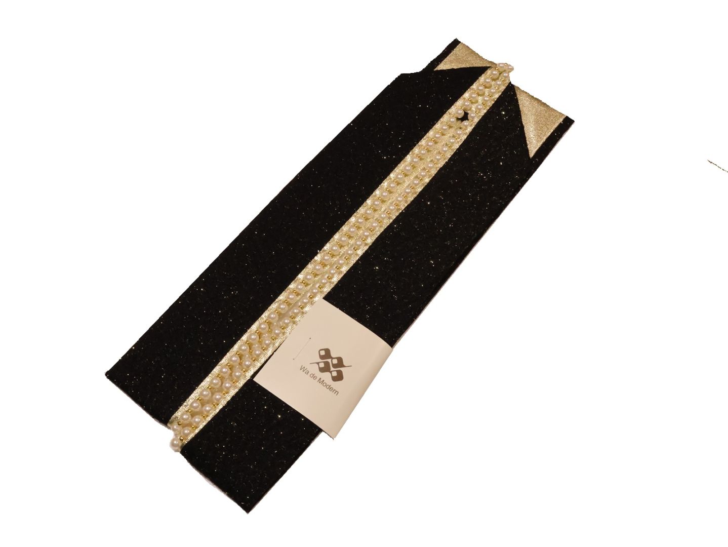 パール付き重ね衿(棒衿仕立て)「黒色の地に金色(ラメ入り)」
