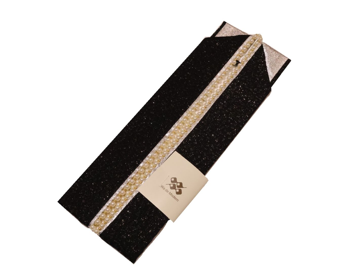 パール付き重ね衿(棒衿仕立て)「黒色の地に銀色(ラメ入り)」