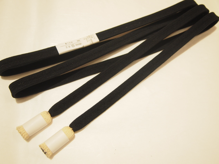 夏物正絹帯締め(平組)「黒色の地にアイボリー色の房」