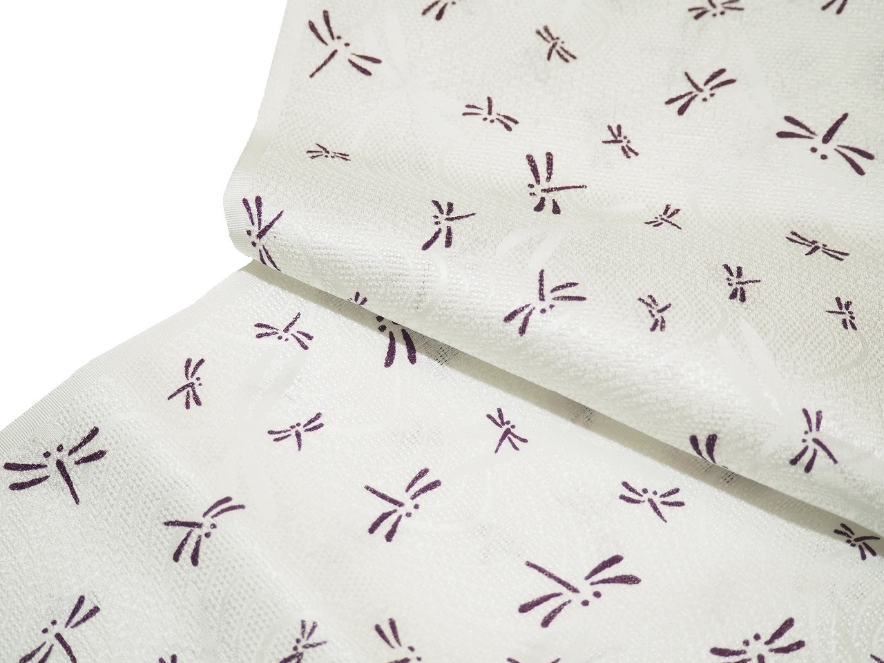 ・夏物正絹帯揚げ(紗)「白色の地に紫色のトンボの柄」