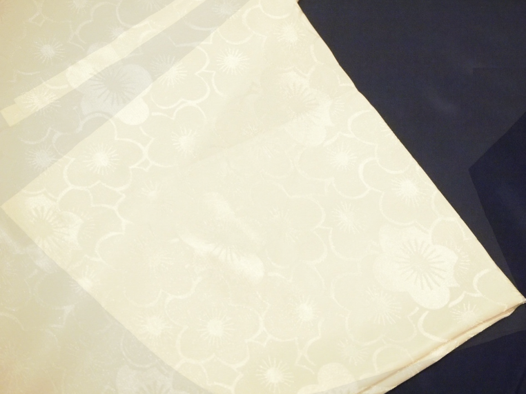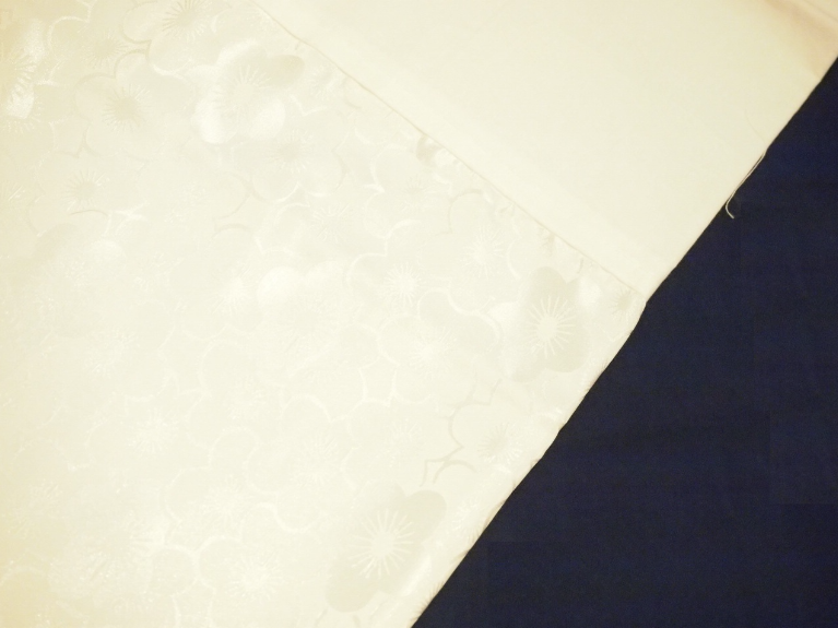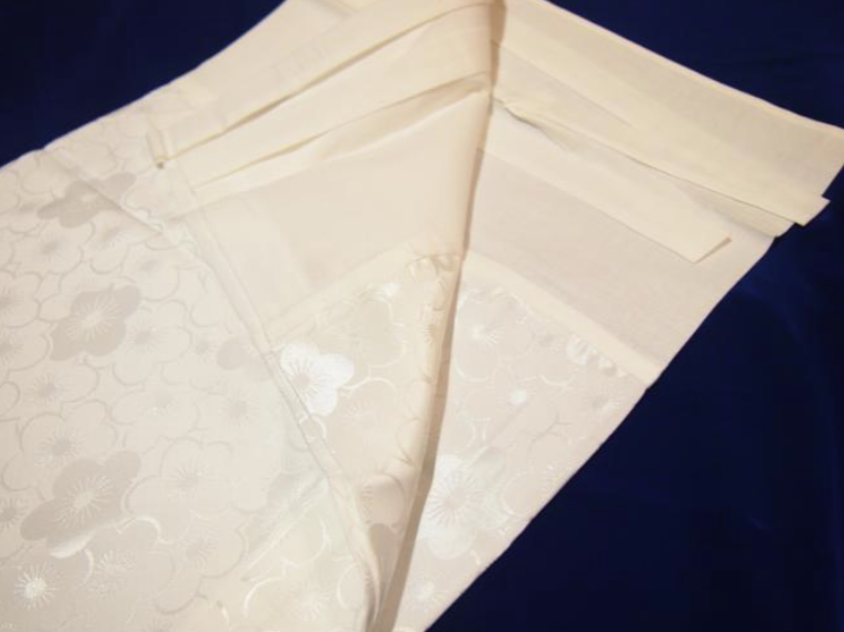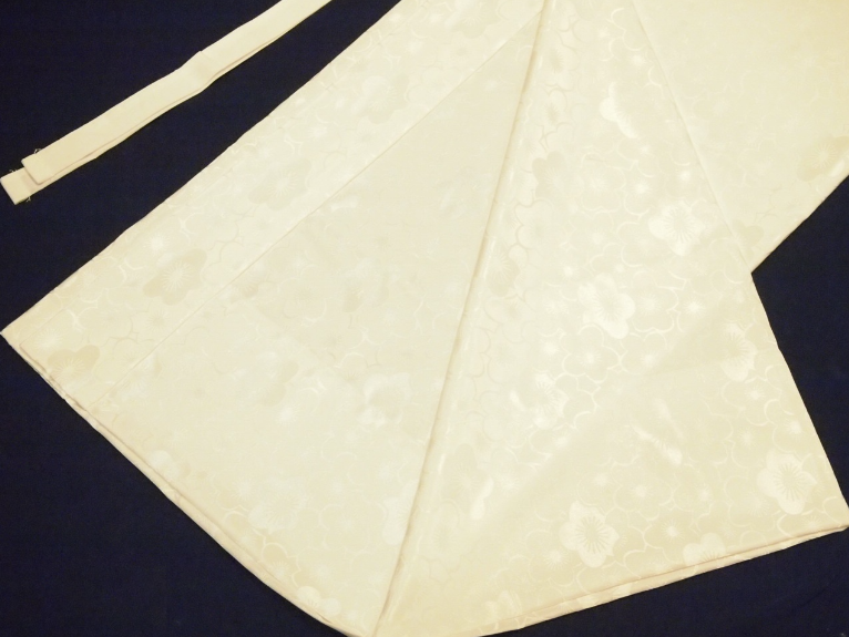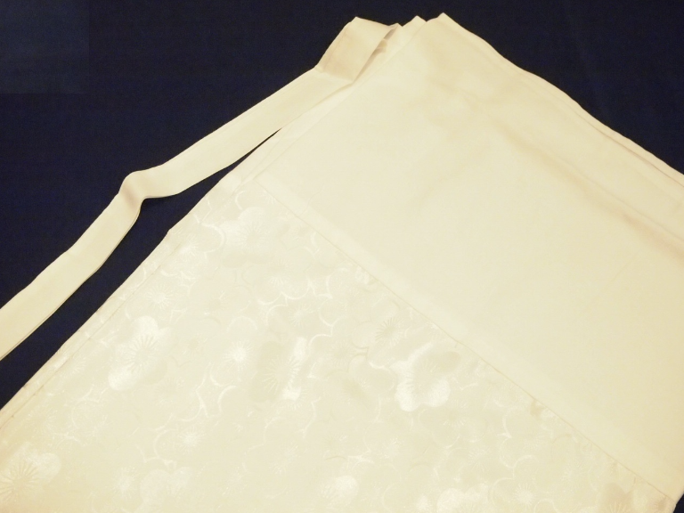 【取寄商品】綸子ポリエステル裾よけ「白色の地に梅の模様」(Lサイズ)