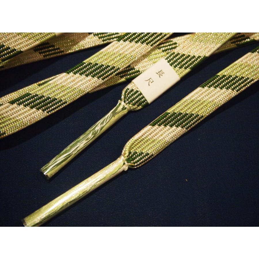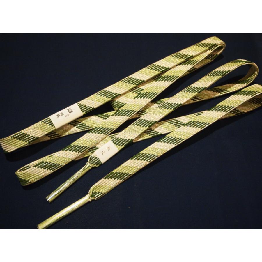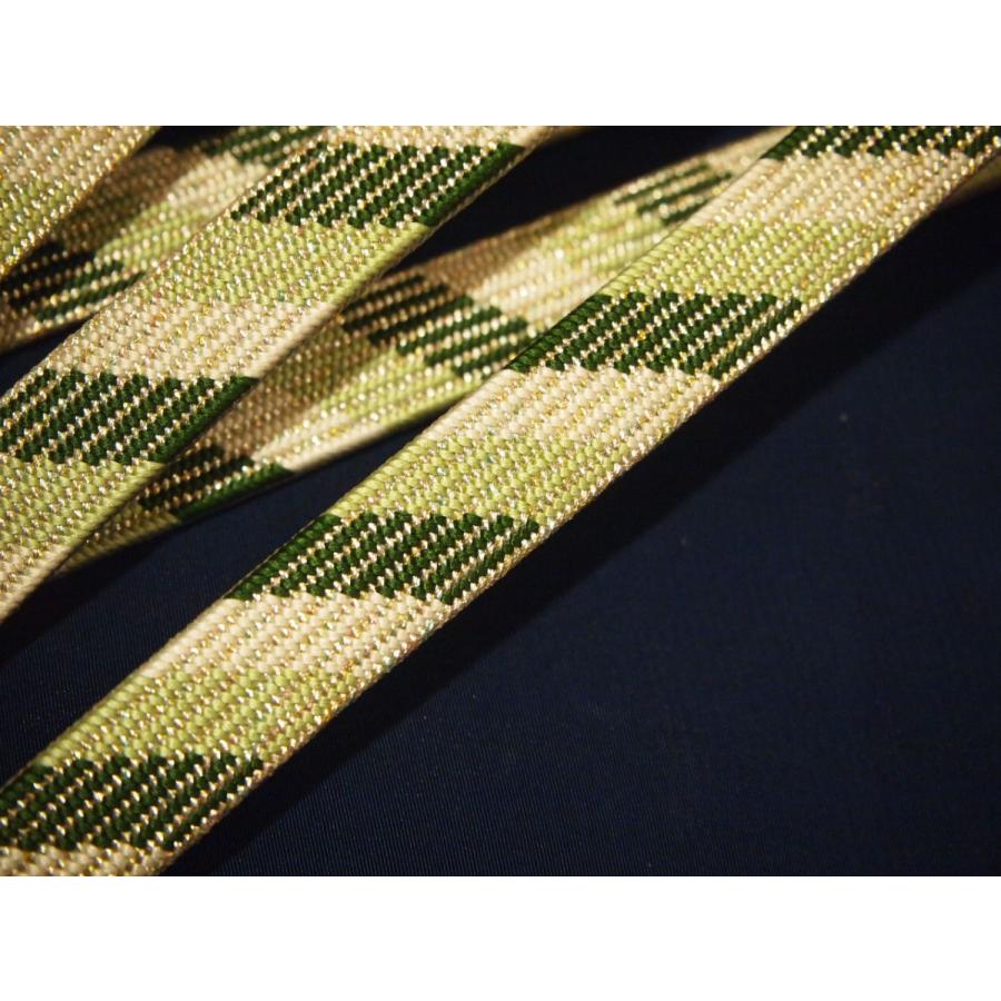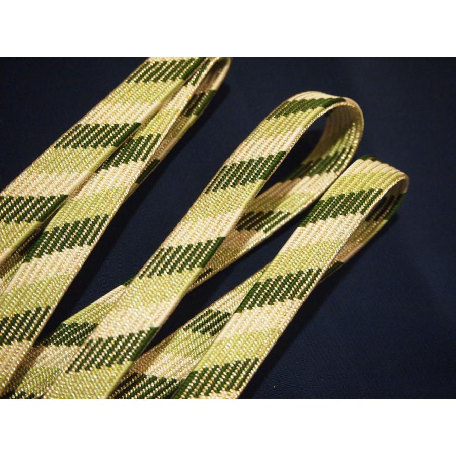・長尺正絹帯締め「深緑色と薄緑色の斜め模様に銀糸」