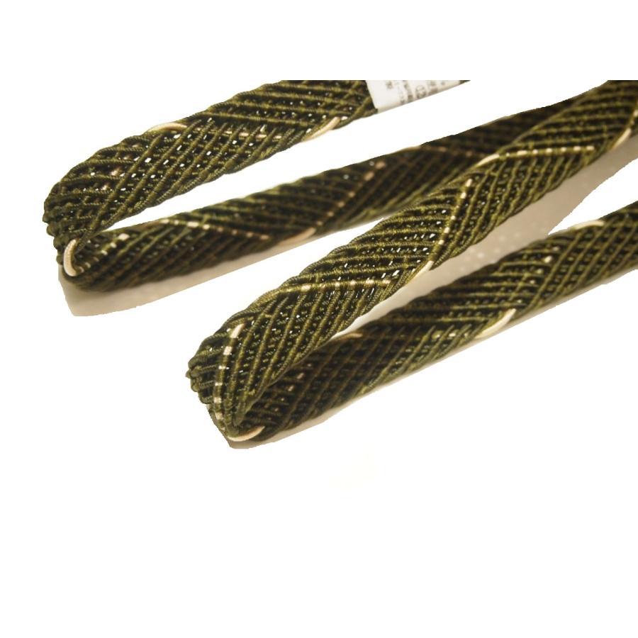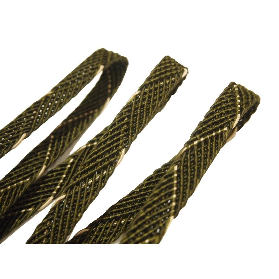 ・夏物正絹帯締め(レース)「深い抹茶色の地にアイボリー色のライン」