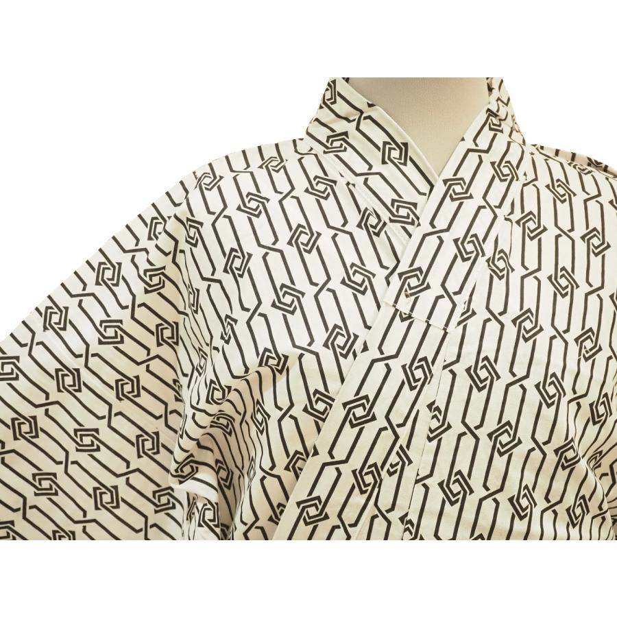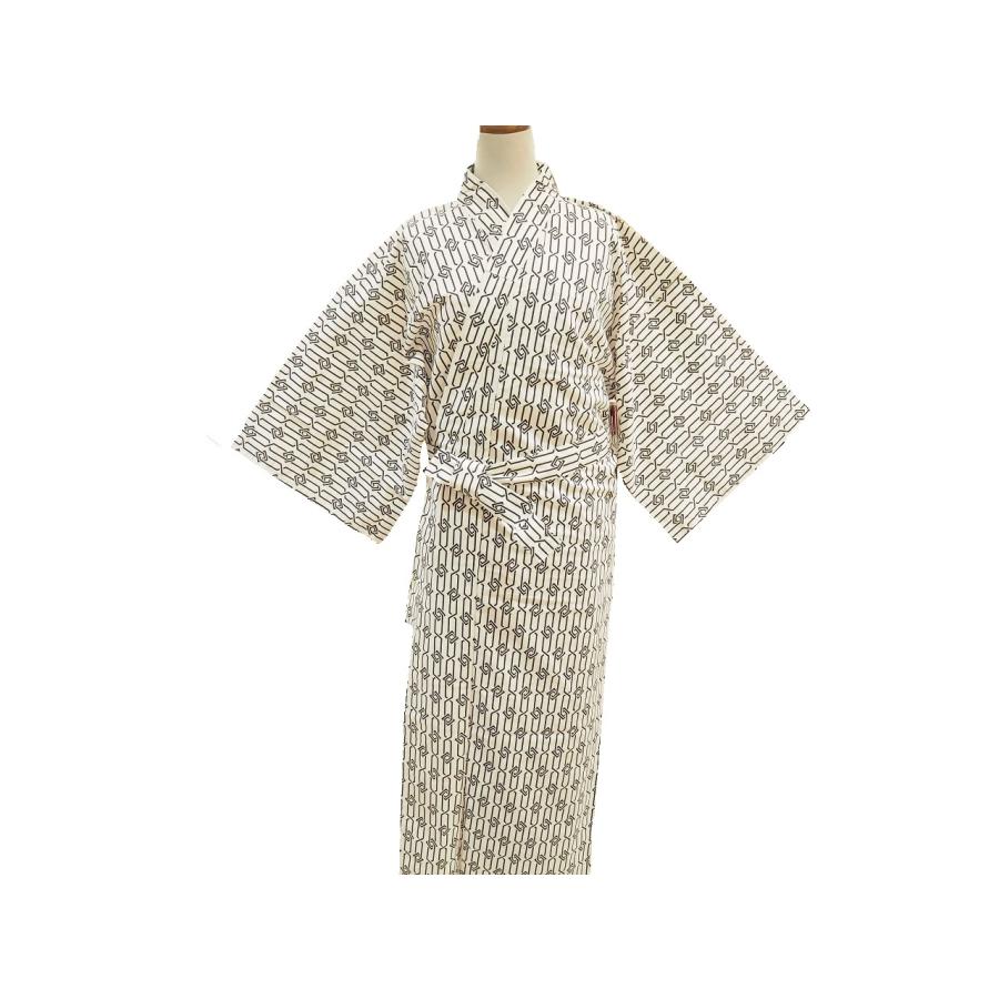 ねまき浴衣「白色の地に紺色のくさび繋ぎ模様(№2491)」