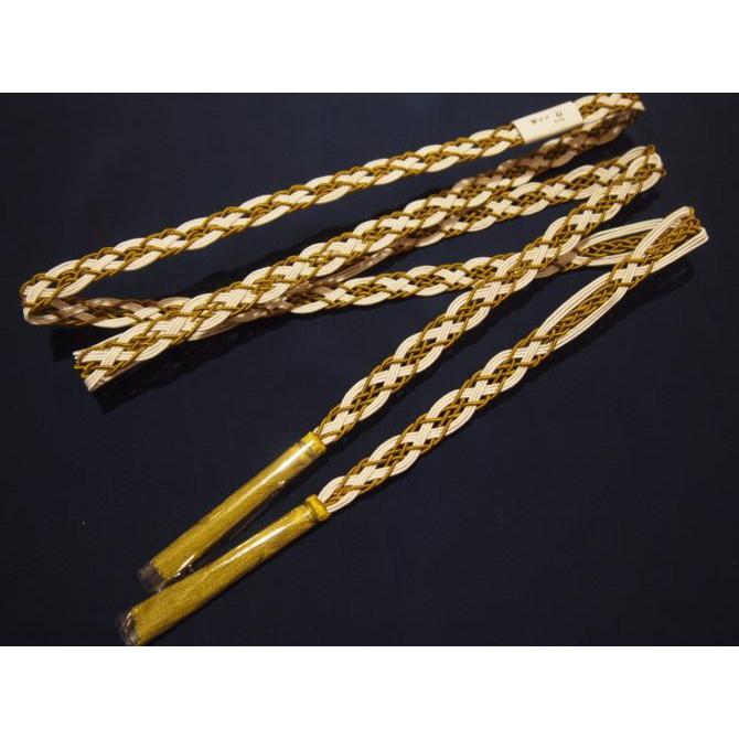 ・夏物正絹帯締め(レース)「白色の地に金茶色」