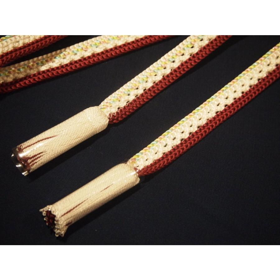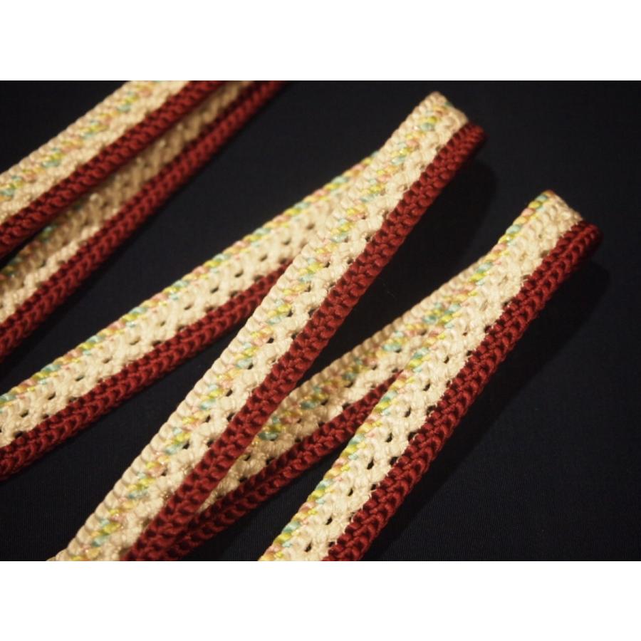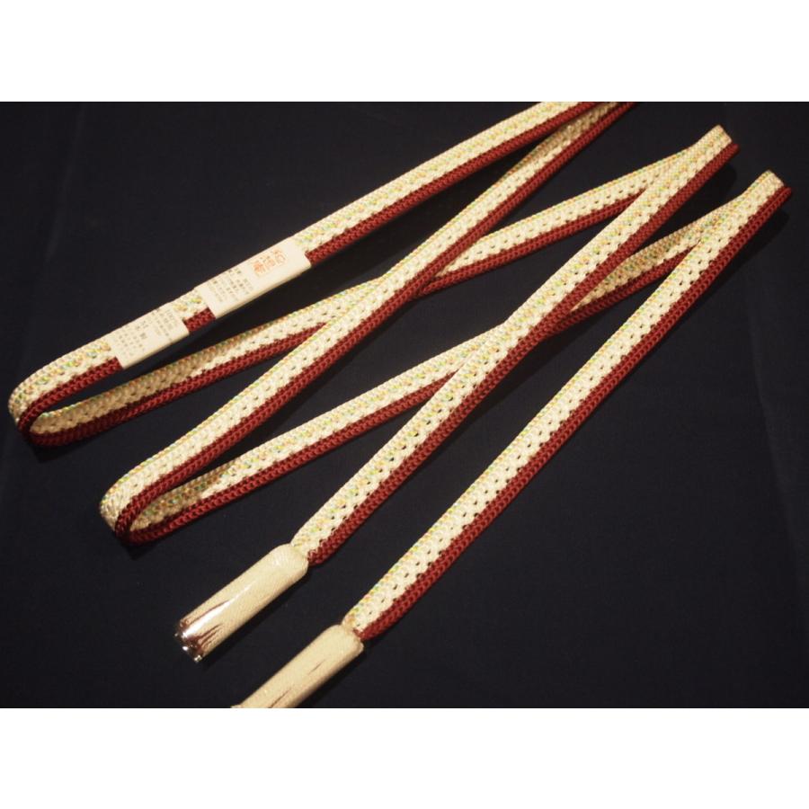 夏物正絹帯締め(変わり平組)「白色の地に赤茶色ライン」