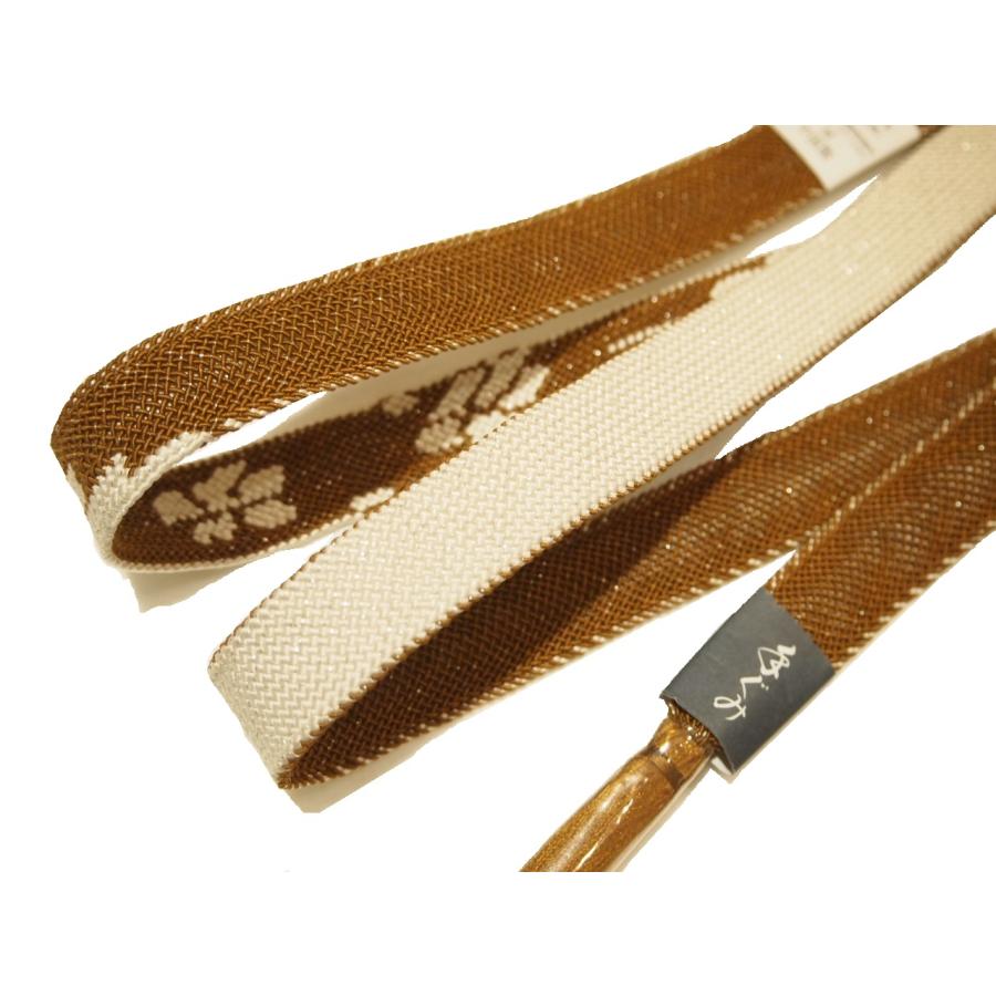 夏物正絹帯締め(平組)「茶色の地に白地に花の模様」