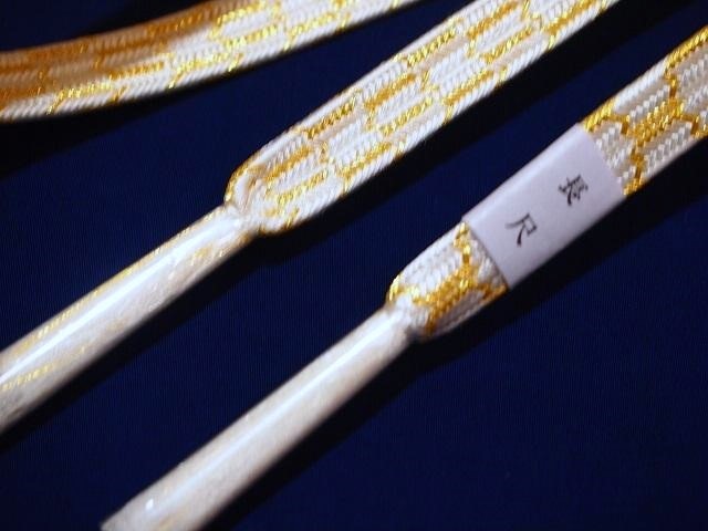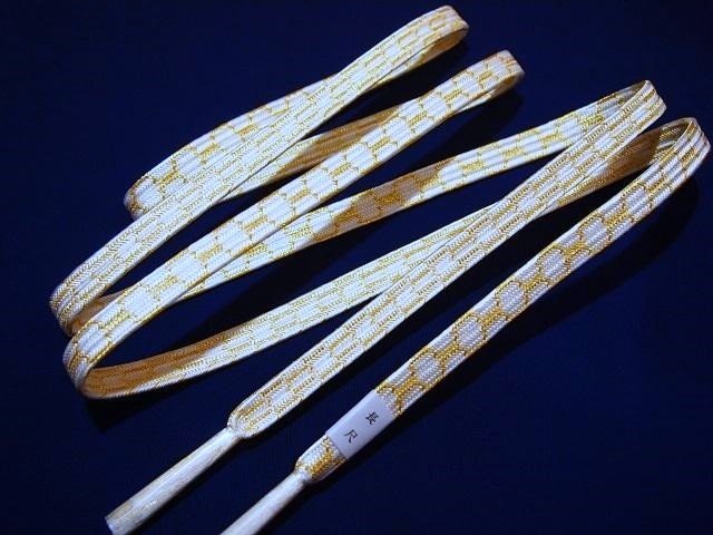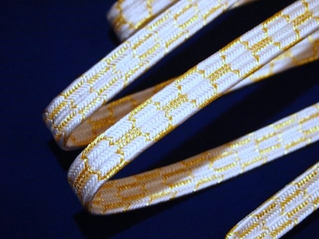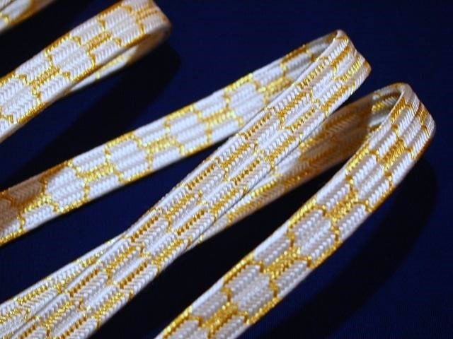 長尺礼装用正絹帯締め「白色の地に金色の亀甲模様」