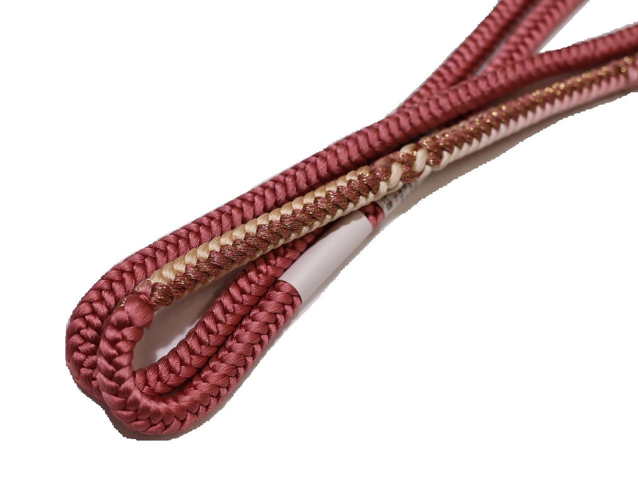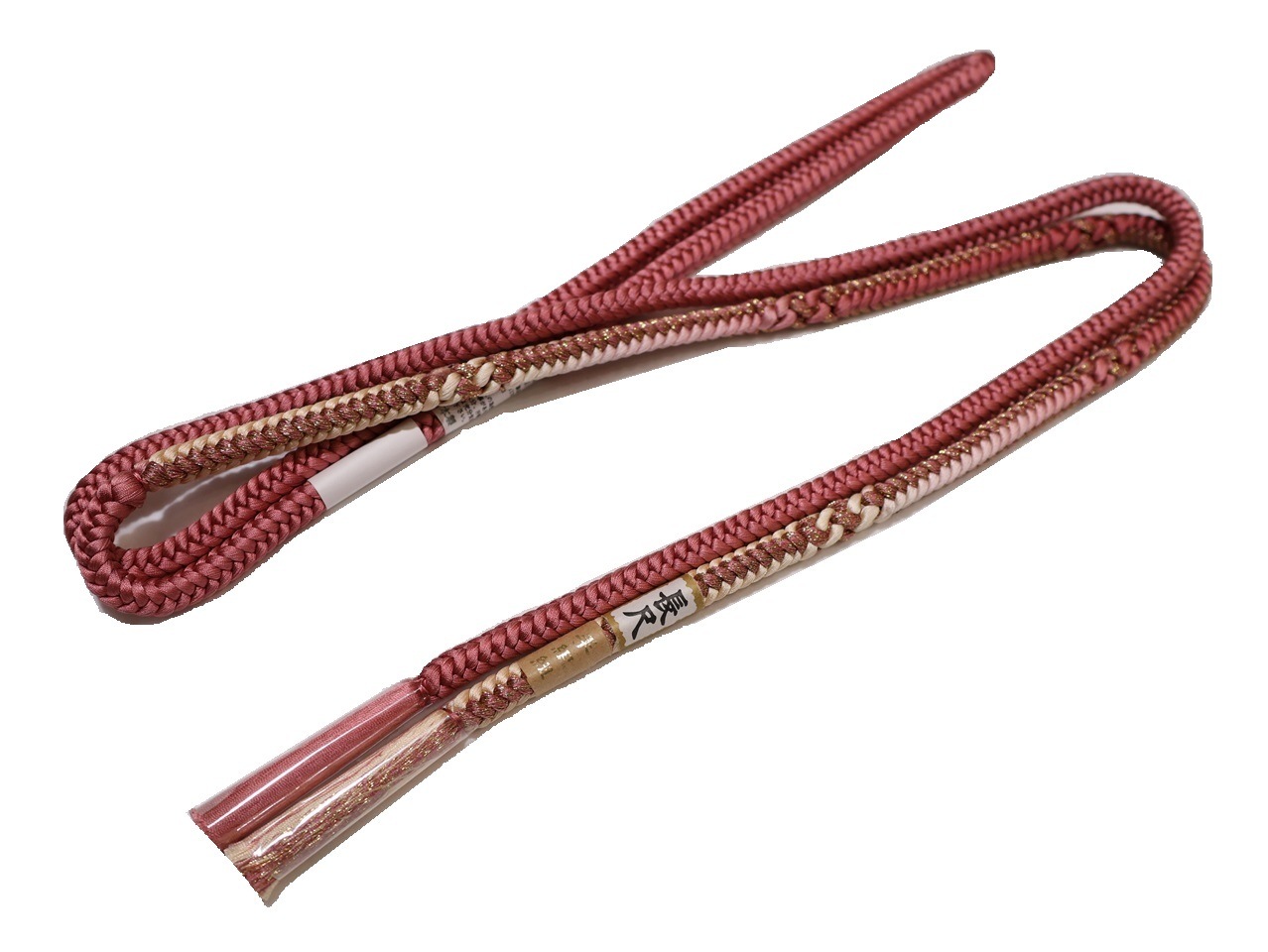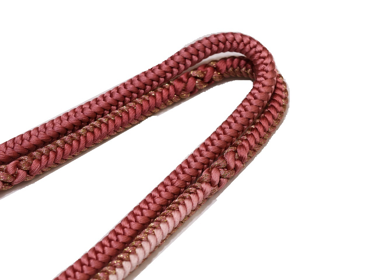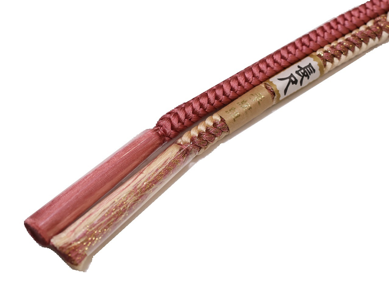 ・長尺正絹帯締め(丸組)「ローズ色の地にぼかしと金色のラメ」