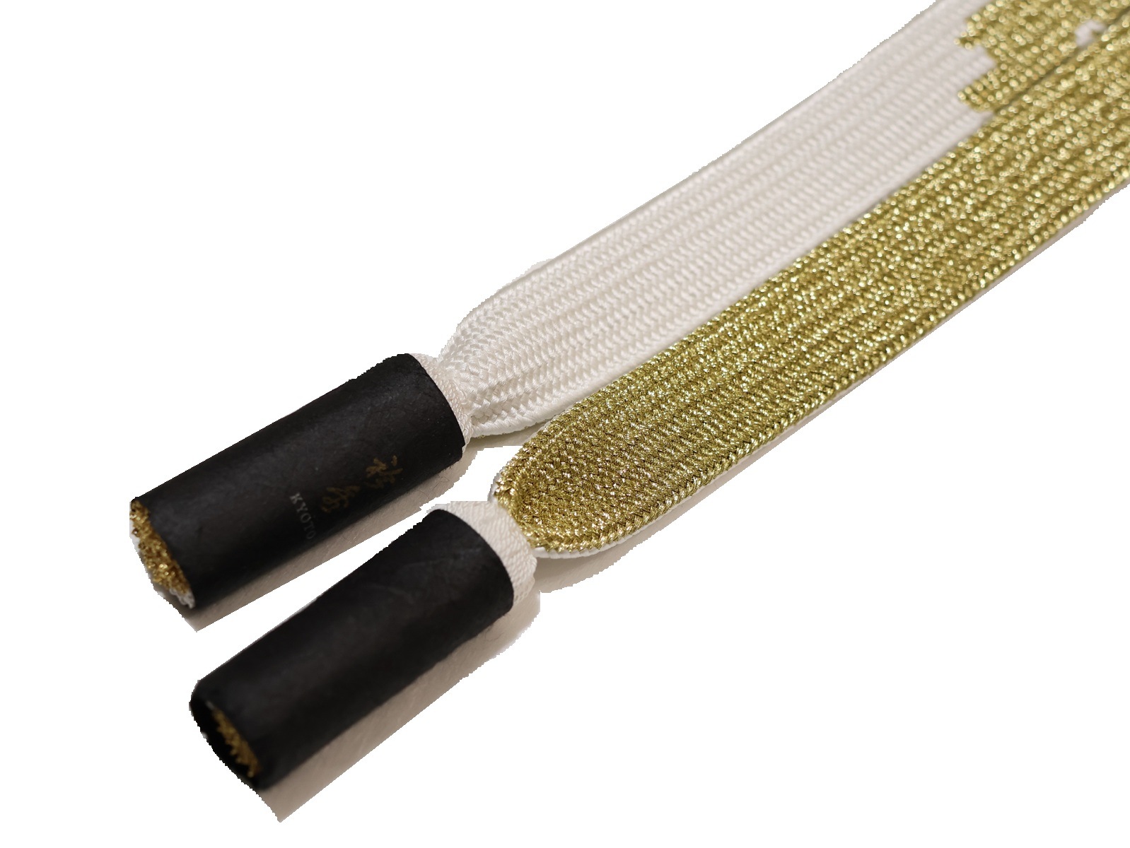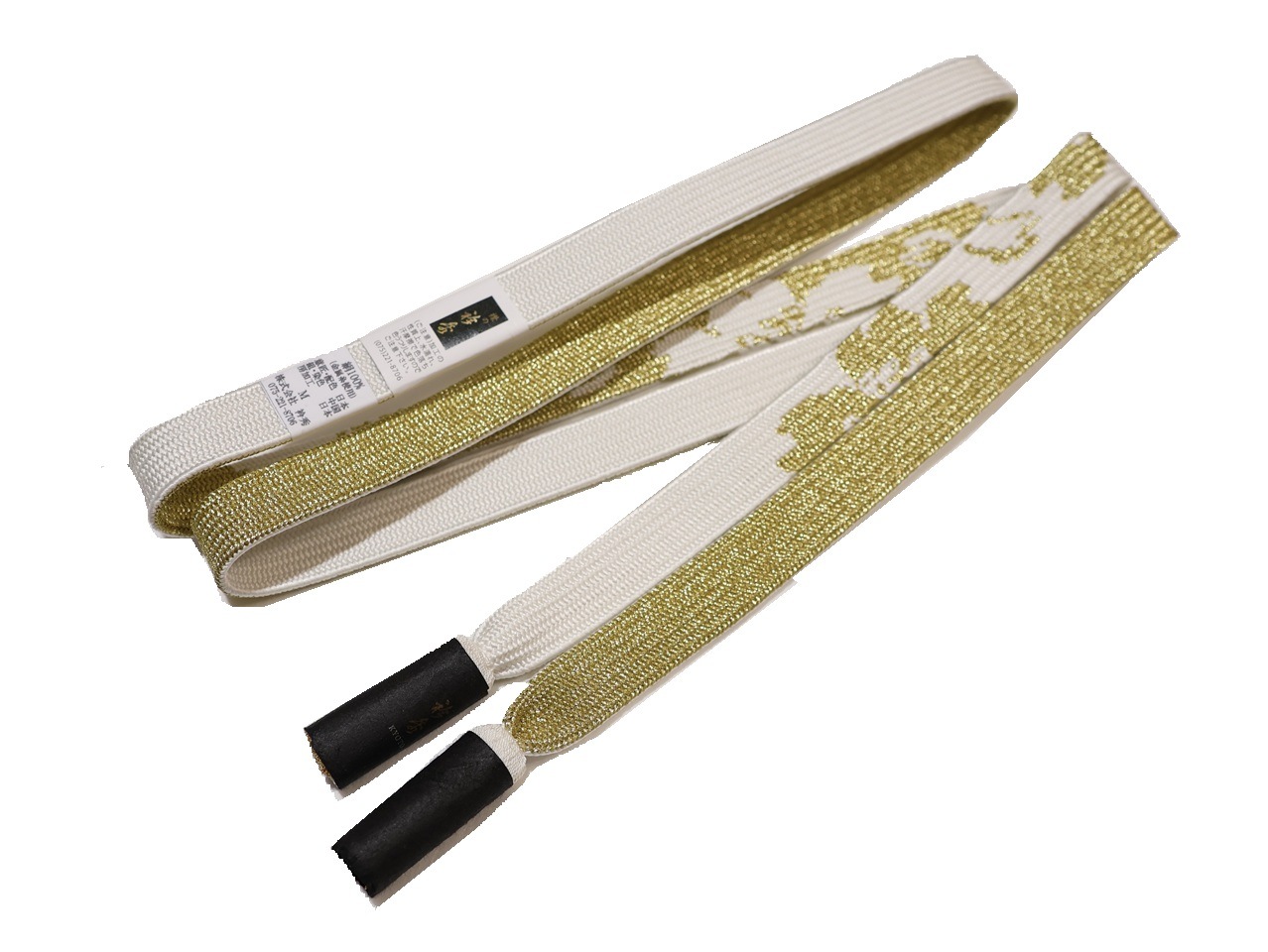 ・振袖用正絹帯締め(平組)「白色の地に金色の模様」