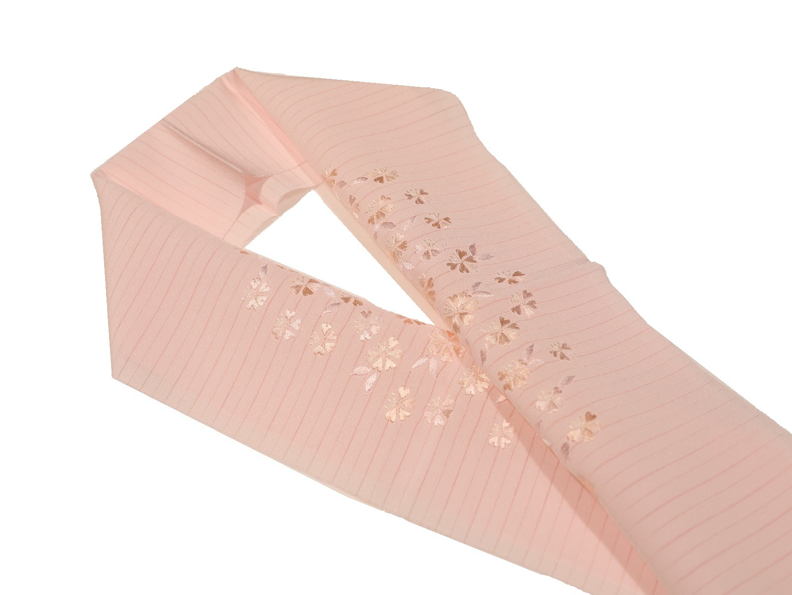 ・夏物刺繍半衿(絽)「ピンク色の地に薄ピンク色の花の刺繍」